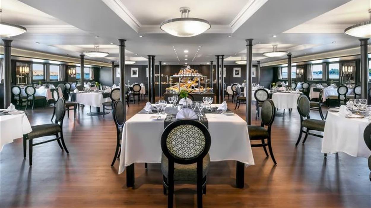 The Mövenpick MS Sun Ray is a modern, elegant and luxurious cruise vessel that features 66 spacious cabins and suites along with various onboard dining and entertainment options. Essential amenities include free Wi-Fi, an LCD TV, a safe deposit box, air conditioning, a private bathroom with a bathtub, and more. Guests will enjoy a diverse culinary experience, with scrumptious breakfast, lunch, and dinner buffets at the main kitchen. For entertainment, there are regular Oriental Shows, a fancy dress party, and a cocktail reception.