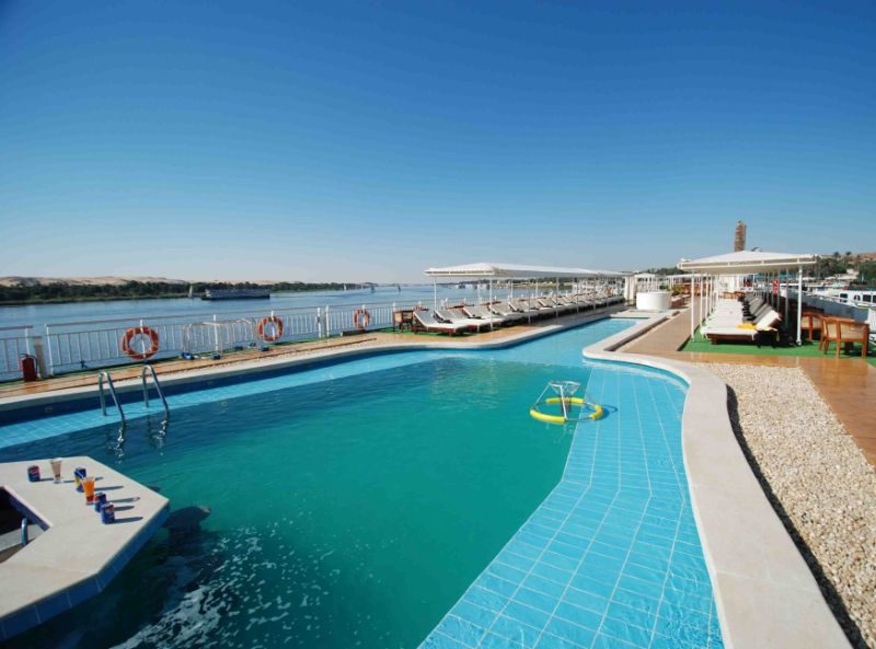 The MS Ciela (ex MS Opera) is a 5-star Deluxe cruiser which sails the incredible River Nile in chic style and splendour. It features 86 cabins and 15 suites, accommodating up to 199 guests in comfort and elegance, and was designed to capture the atmosphere of the golden age of Nile cruising. Its classic features include a cigar room, piano bar, library, and billiards table, as well as offering modern, relaxing leisure and dining facilities, such as a swimming pool, Jacuzzi, health club, gift shop, bar, and restaurant, with the option to enjoy an all-inclusive cruise experience.