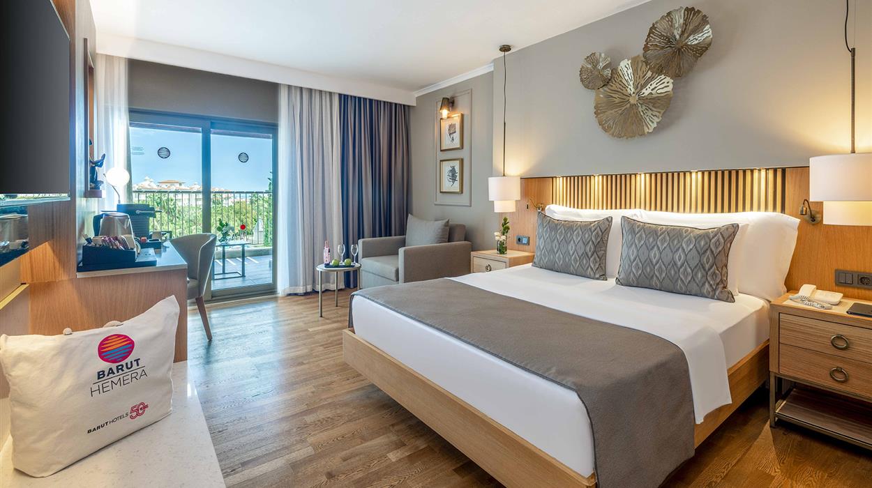 Barut Hemera is a lively, all-inclusive resort that combines modern comfort, family-friendly amenities, and relaxed Mediterranean charm. From sunlit pools and aqua parks to private beach access and spa indulgence, the resort caters to all types of travellers. The diverse restaurants and bars offer international, Turkish, Italian, and seafood cuisines, along with cocktails and casual refreshments, ensuring a culinary experience for every taste. Spacious rooms, swim-up suites, and family accommodations make it ideal for groups or couples seeking both leisure and convenience. With attentive service, engaging entertainment, and well-designed facilities, Barut Hemera provides an all-encompassing holiday where fun, relaxation, and luxury blend seamlessly.