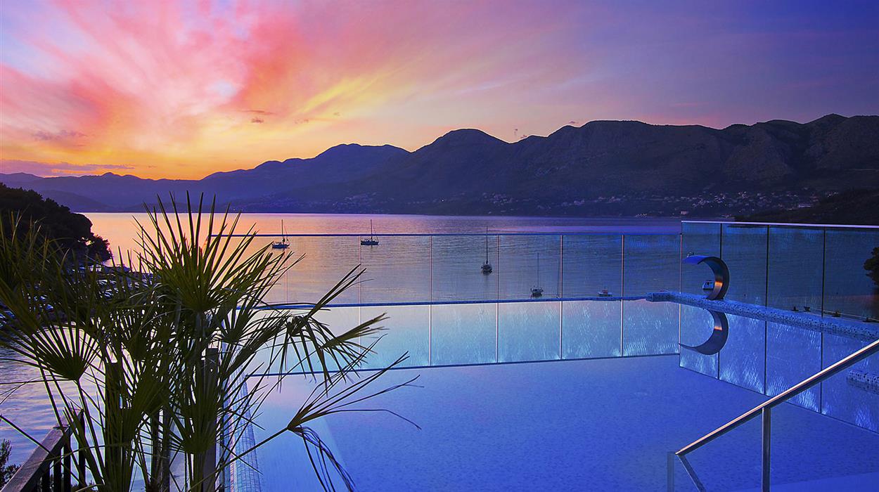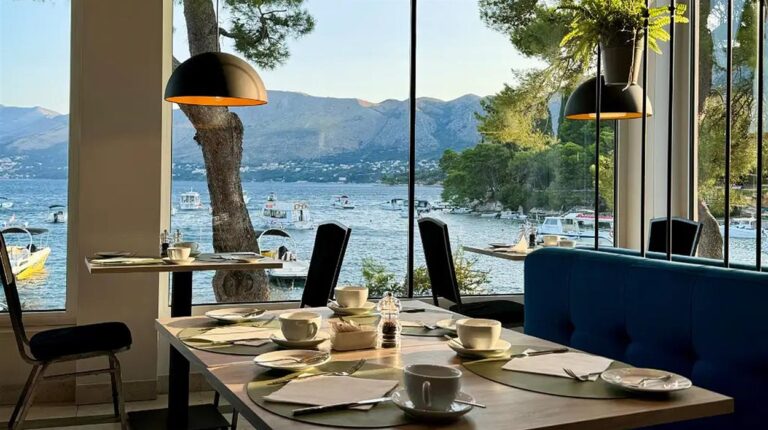Situated in the charming coastal town of Cavtat, Hotel Cavtat combines modern comforts with rich historical character. Recently renovated in 2023, this stylish hotel features a rooftop infinity pool offering panoramic views of the Adriatic Sea and Tiha Bay. Guests can enjoy direct access to a private beach, Mediterranean-inspired dining, and themed gala evenings with live music. Its central location allows easy exploration of Cavtat’s medieval Old Town and bustling harbour. With tranquil surroundings and contemporary amenities, Hotel Cavtat is ideal for travellers seeking a peaceful yet vibrant Adriatic escape