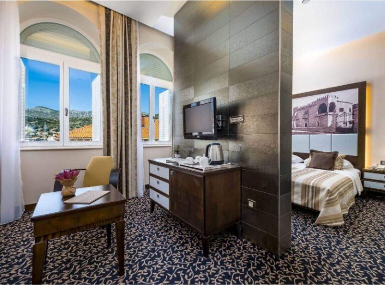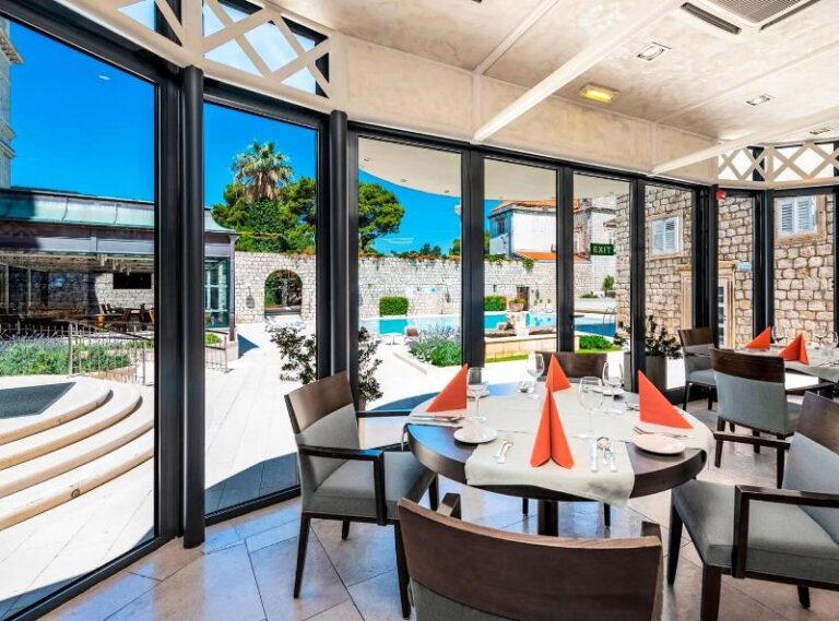 Hotel Lapad occupies one of Dubrovniks oldest buildings, giving the hotel a unique charm and feel. The hotel is located on the waterfront at Gruz Harbour and is just 3km away from Dubrovniks picturesque Old Town and its restaurants, shops and culture. The hotel boasts a large outdoor pool and guests will also find a pebble beach just a 10 minute walk away. The hotels restaurant is well known for its high standard of food with a Dalmatian themed night once a week. Entertainment and music is provided in the evenings.
