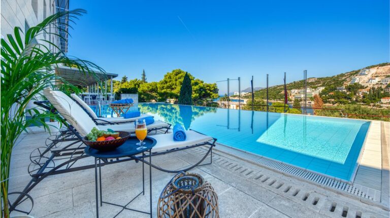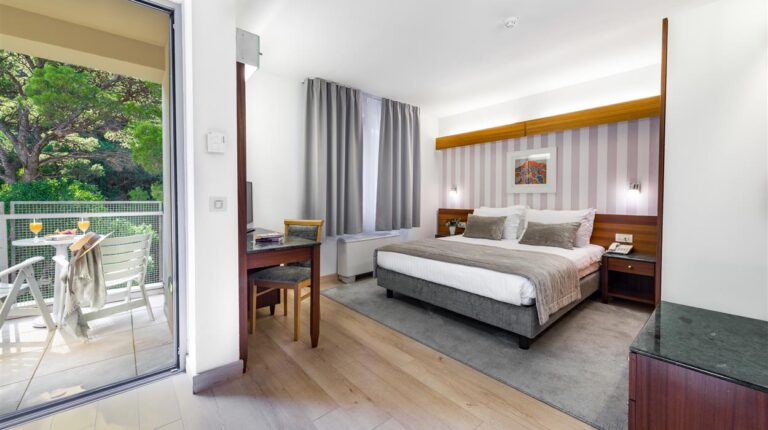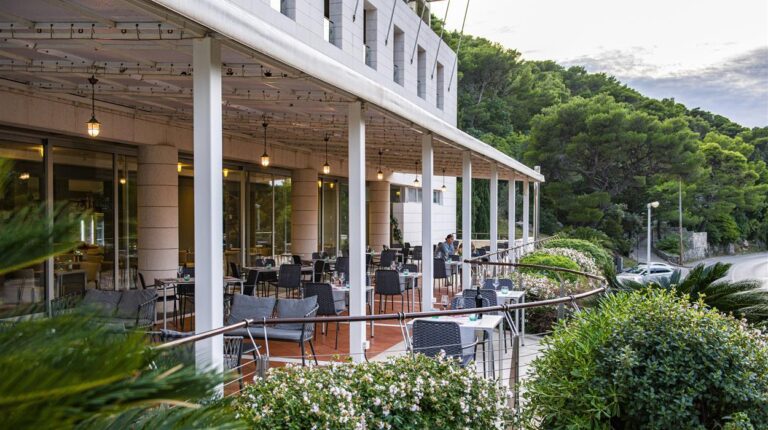 Hotel Uvala is a charming wellness-focused retreat situated on Dubrovnik’s Lapad Peninsula. This four-star property combines modern design with serene surroundings, offering rooms with balconies showcasing sea or park and woodland views. Guests can rejuvenate at the wellness centre featuring saunas, an indoor pool, and holistic treatments or dine on fresh Mediterranean cuisine and local specialities at Mantala Restaurant. Guests will find it easy to explore surrounding islands such as Lokrum, Mljet or Kolocep, and with nearby beaches and convenient access to Dubrovnik’s Old Town, Hotel Uvala is perfect for relaxation seekers wanting proximity to cultural attractions and Southern Dalmatia’s natural beauty.