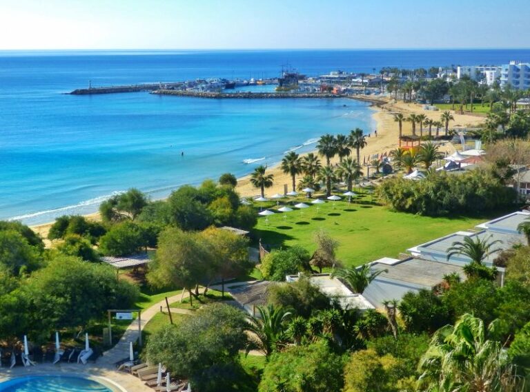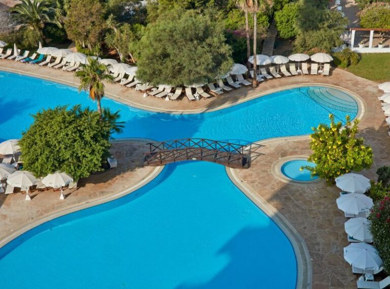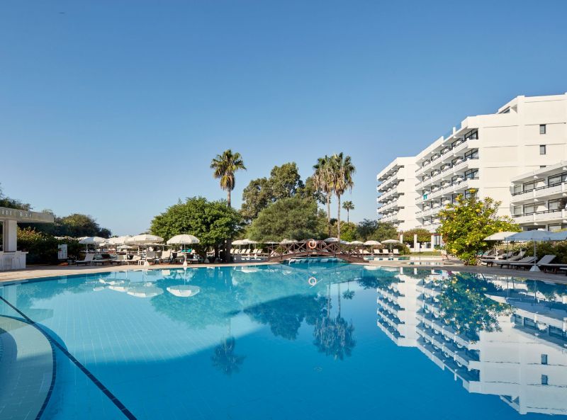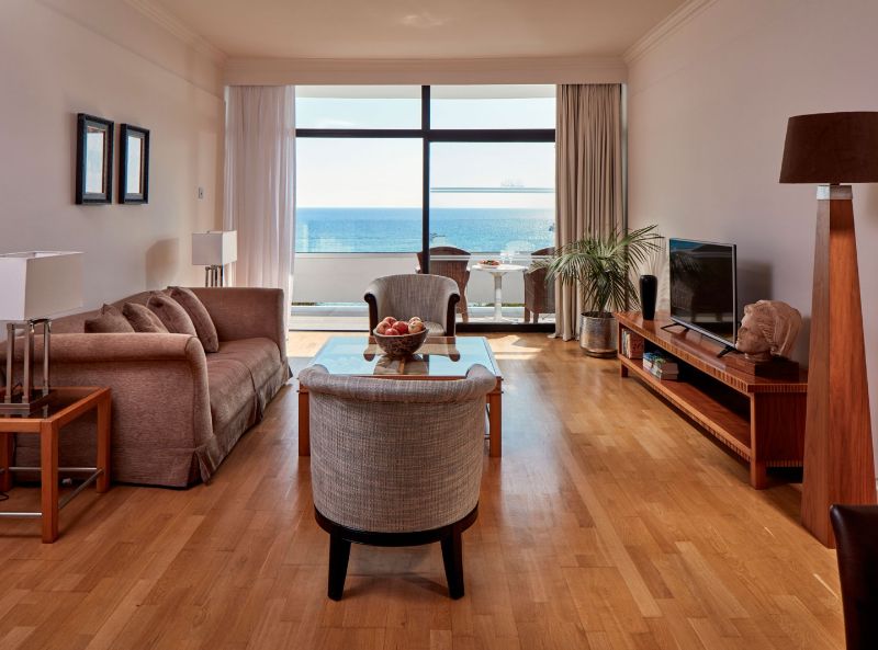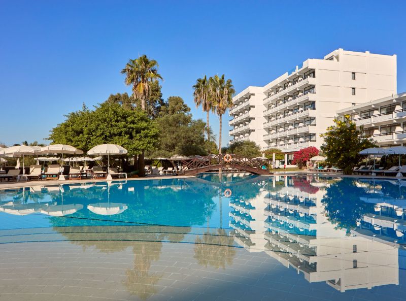 This luxury five star hotel is situated on one of the most beautiful sandy beaches in Cyprus with breathtaking views of the crystal clear waters of the Mediterranean Sea. The hotel offers a world of amenities together with exceptional service and friendly staff. There are 3 restaurants, coffee shops, bars, and a spa and wellness centre. The Grecian Bay is renowned for its pleasant and welcoming atmosphere, ensuring that guests staying here will have a truly memorable experience.