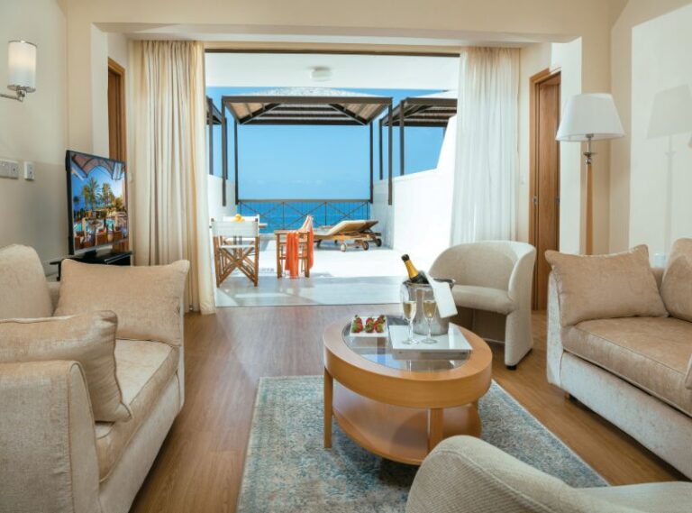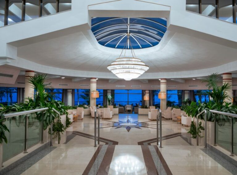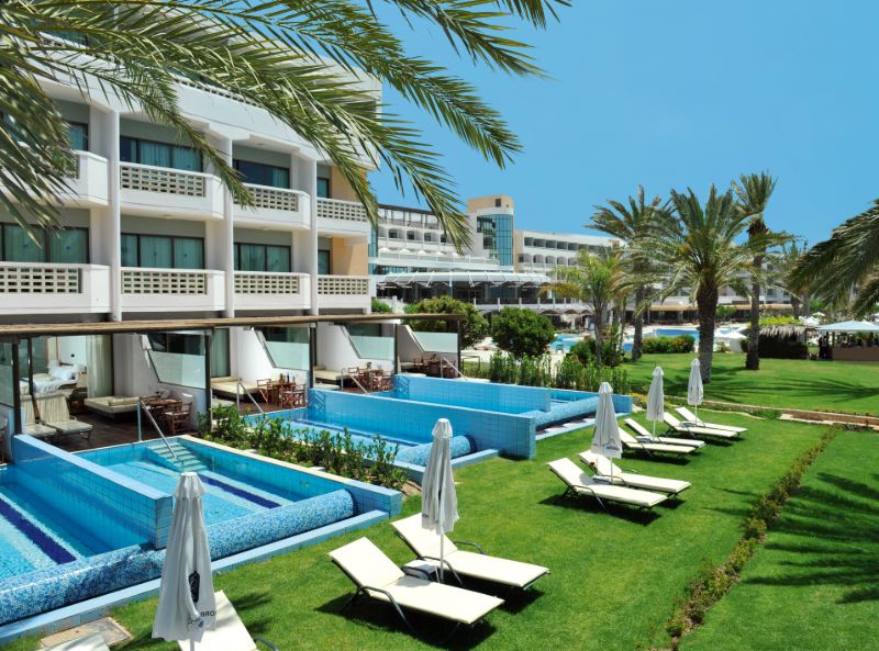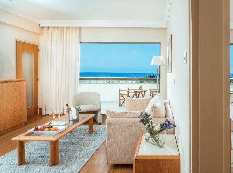 520 rooms including ELITE CLASS: Superior and Superior Deluxe, Superior Swim Up, Junior Suites with private pool & Suites with spacious balcony or terrace. Classic room facilities include a bathroom with bathtub or shower, washbasin & Toilet, spacious balcony, air conditioning (May – Oct ) & central heating (Nov- Apr), telephone, flat-screen LCD 32” satellite TV & radio, fridge – mini bar on request, hairdryer, iron & board, safe box (free), tea/coffee making facilities (replenished daily), espresso machine, beach towels, bathrobes & slippers, Free WiFi, scale, makeup/shaving mirror, scales, floor to ceiling windows, ironing facilities, USB socket, Luxury Beds, ELITE CLASS Superior & Suite rooms have additional facilities and services
