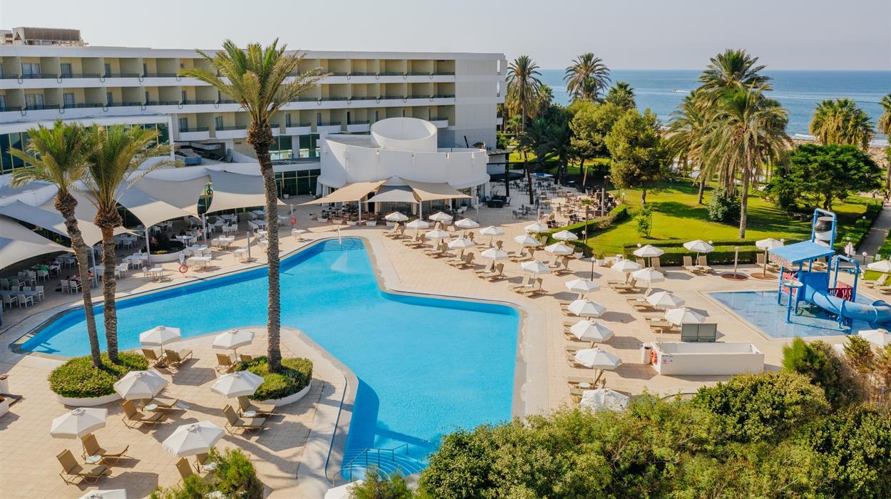 Imperial Island Resort is a lively and inviting all-inclusive resort on the stunning Paphos coastline, offering the ideal mix of relaxation and activities for families, couples, and groups alike. With beautifully renovated rooms and suites, a range of themed restaurants and bustling bars, and extensive leisure facilities including outdoor and indoor pools, a soon-to-open waterpark, spa, and sports options, there is something for every guest.