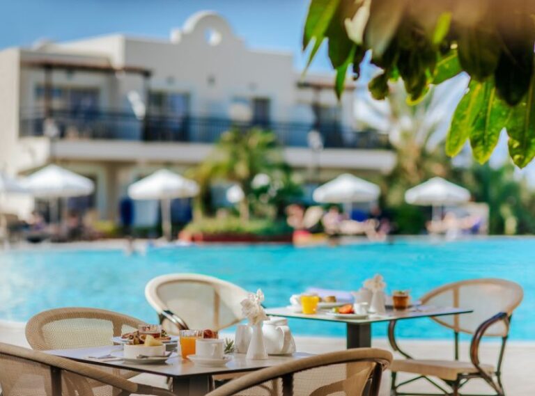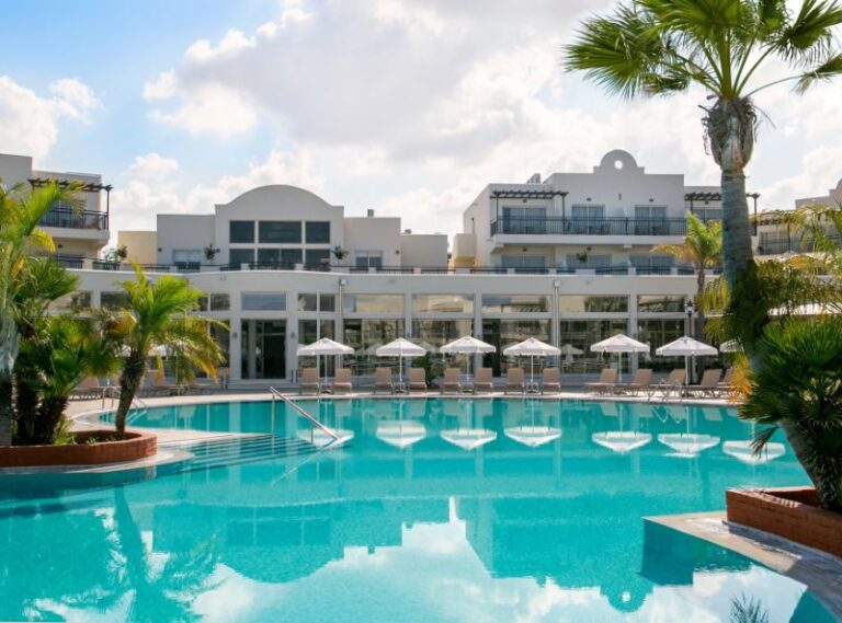 Louis Paphos Breeze is a brand new hotel brought to you by the renownedLouis Hotel group that aims to bring an exceptional Ultra All Inclusiveexperience to couples and families in beautiful surroundings. The hotellies on a lovely location overlooking the Mediterranean sea in Chloraka,an area just 4km from the centre of Paphos. The hotel has been built withpeace and relaxation in mind with the beach-front location, extensivegardens, spa centre and carefully designed interiors and exteriors allcoming together to create the desired outcome. Guests can dine inthe main restaurant which offers a lavish buffet or the Meze by Ellinikooffering a unique dining experience and there are 3 bars throughout thehotel. Other leisure facilities include an outdoor and indoor pool, yogaclasses, a fitness centre and a kids club with animation. Both the indoorpool, which features the spa and the gym are being updated to featuremodern equipment. The Louis Paphos Breeze is a fantastic Ultra AllInclusive hotel option in Paphos for both families and couples.