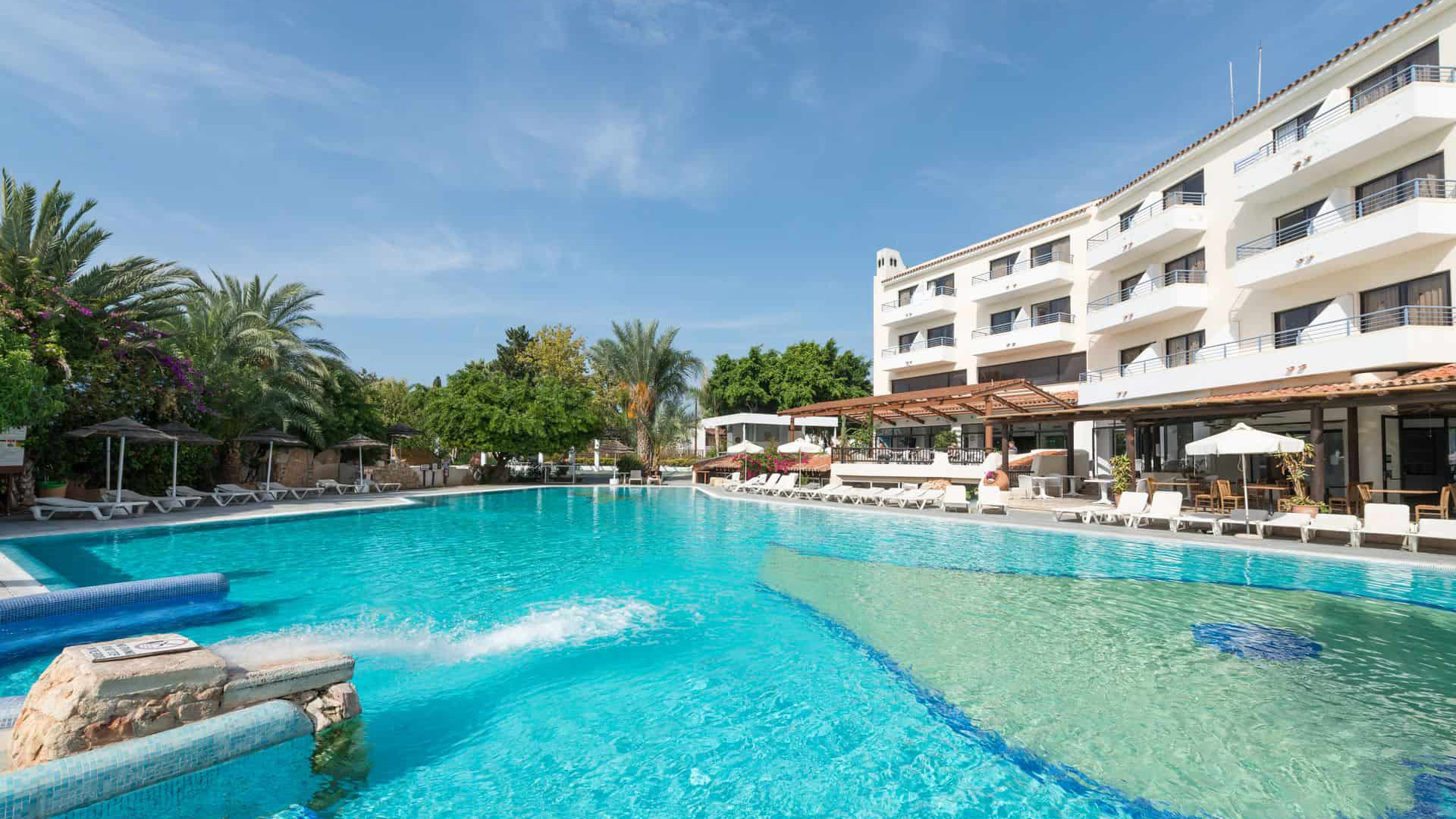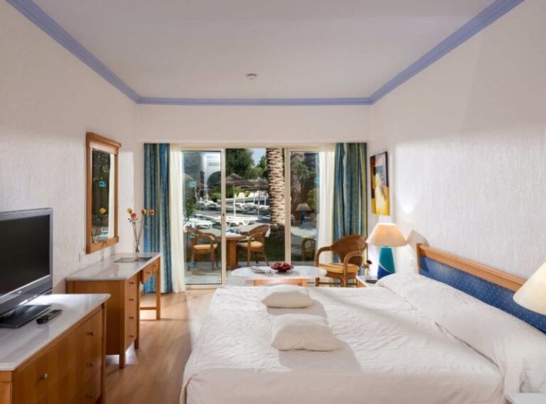 This low rise resort, designed around the theme of Mediterranean village life, comprises a series of small apartment blocks with pretty walkways built around the main hotel. A wide range of facilities are provided at this popular resort whilst its new Health Spa provides a luxurious note. Paphos beach is just minutes away, and the tourist area is within walking distance.