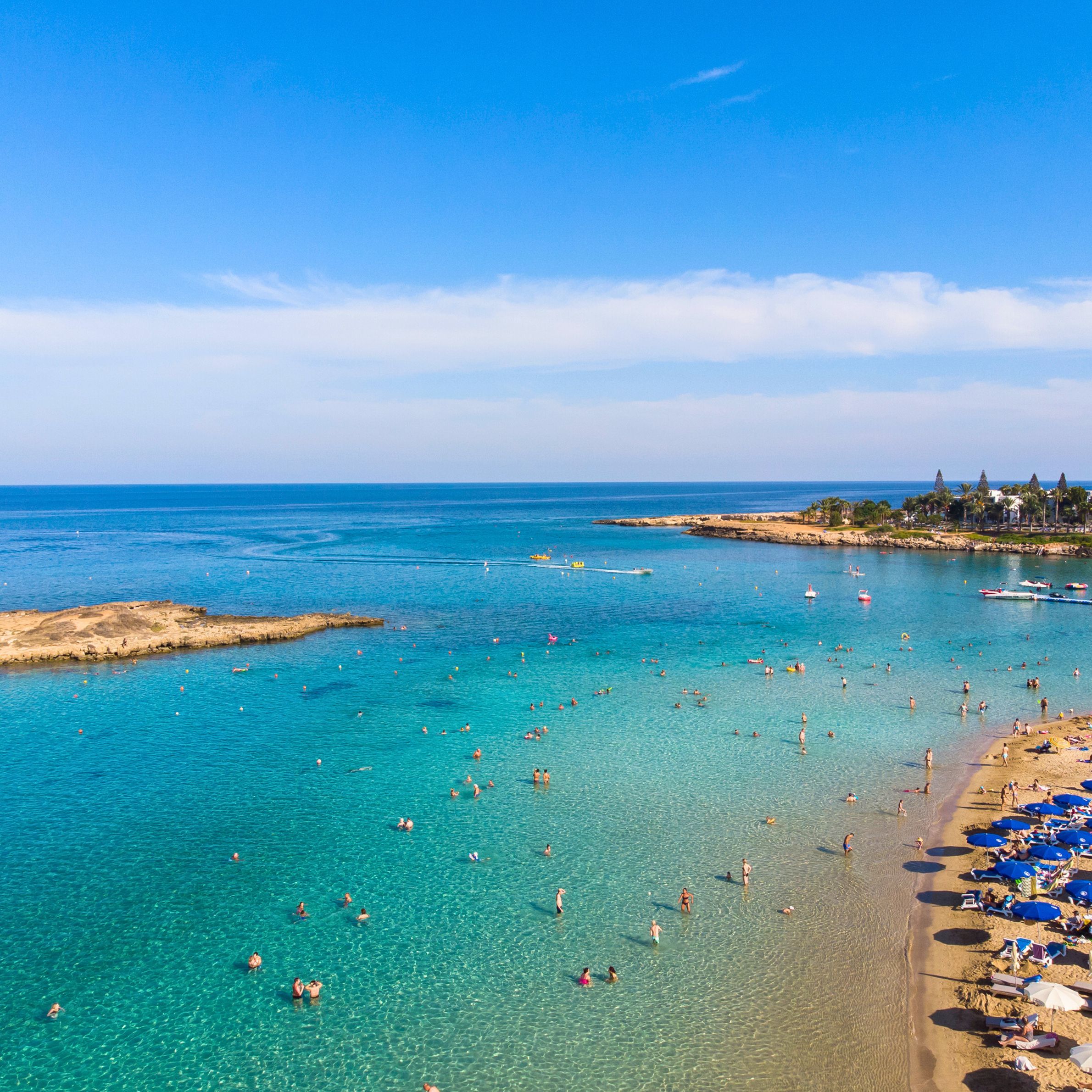 "A laid-back coastal town, with gorgeous sandy beaches, azure waters and a hot summer climate, it is host to among other things, Europe’s third-best beach, the stunning Fig Tree Bay." Protaras is a relaxed, family-friendly resort town in the east of Cyprus. It is renowned for its beautiful unspoilt beaches, which include Fig Tree Bay, rated as Europe’s third-best beach in 2011. It is also situated close to Cape Greco a large national park, that is covered in pine trees and is a great place to hike and explore, amongst beautiful natural scenery. It has a large number of good restaurants that provide both local and international cuisine and is just 12.2 km from Ayia Napa, a more young, hip and trendy holiday resort, allowing visitors to Protaras to enjoy the best of both worlds.