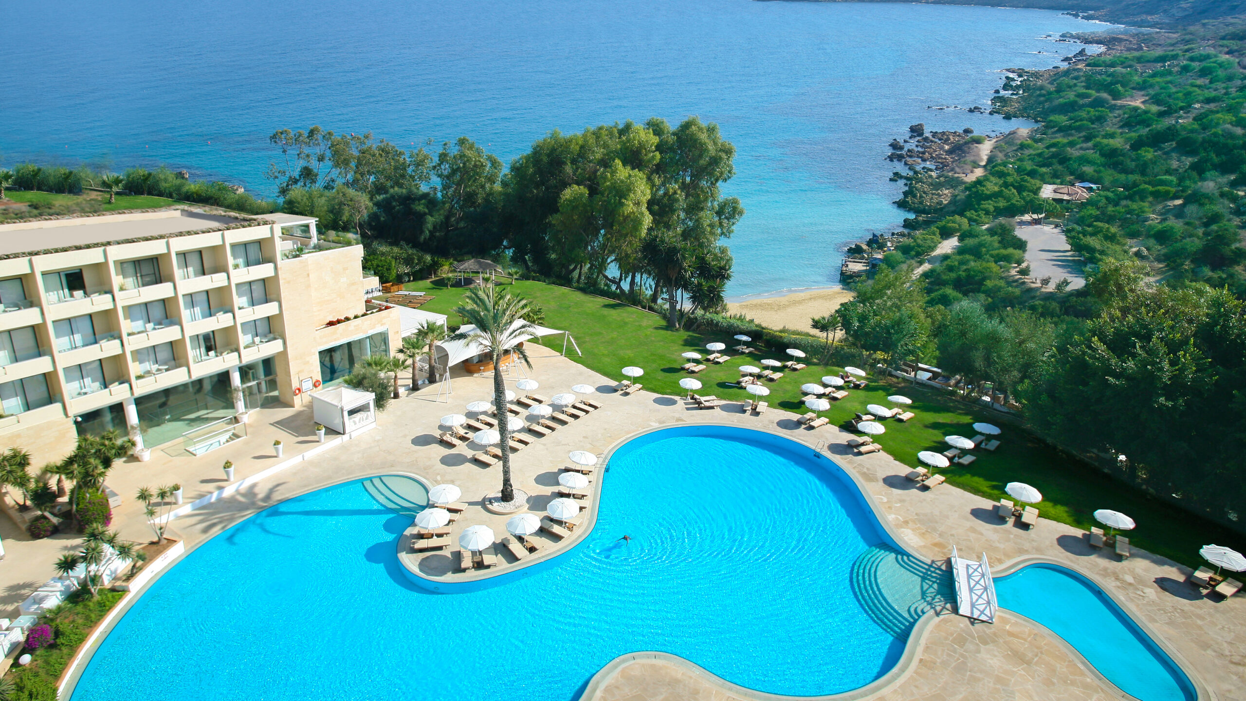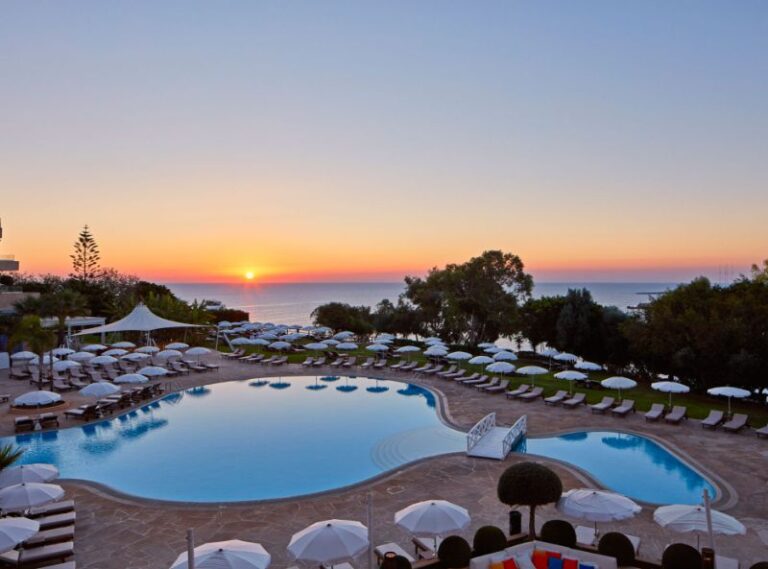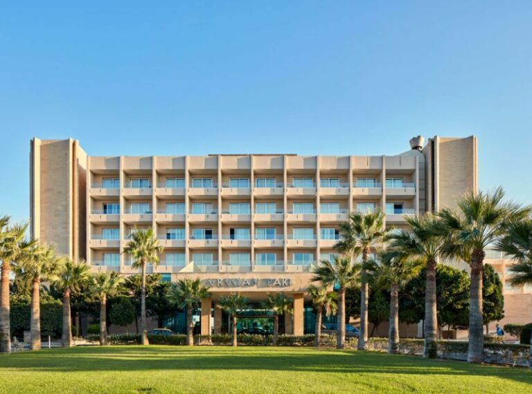 The Grecian Park Hotel is set on a hillside overlooking Cape Greco, with a secluded sandy beach below and variety of excellent facilities available, including a health centre. This attractive hotel is perfectly located, being only a five minute drive away from both Ayia Napa and Protaras. A courtesy shuttle bus service operates to and from Ayia Napa.