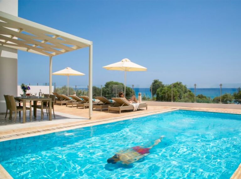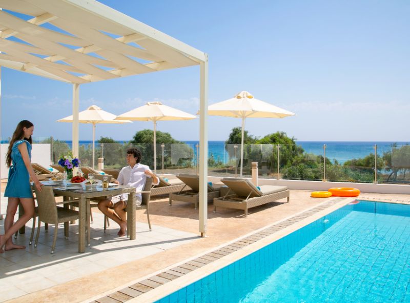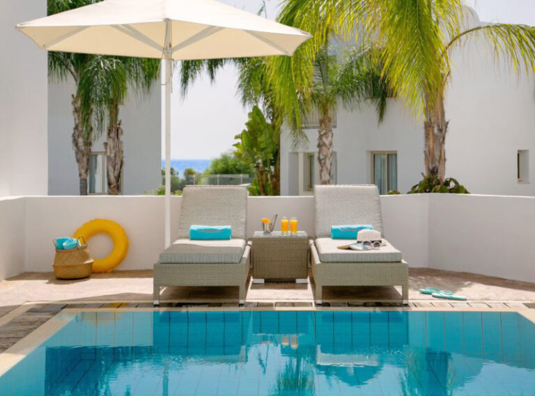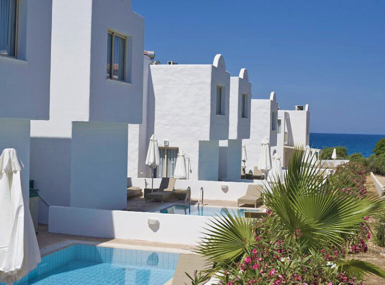 These superior villas with private swimming pools are equipped to the highest standards to provide for a luxurious holiday with all the relaxing benefits of Mediterranean villa living. Located on the famous Pernera Bay in Protaras with its crystal clear waters, the complex comprises eighteen villas each with private parking and individual private pool. Villa guests can also benefit from the use of all the facilities at the neighbouring Louis Althea Beach Hotel when open, including 3 pools, 2 restaurants, tennis court, kids playground and Spa & gym. Larnaca International Airport is 55km away and the lively Protaras entertainment and shopping areas are within a 500m stroll.