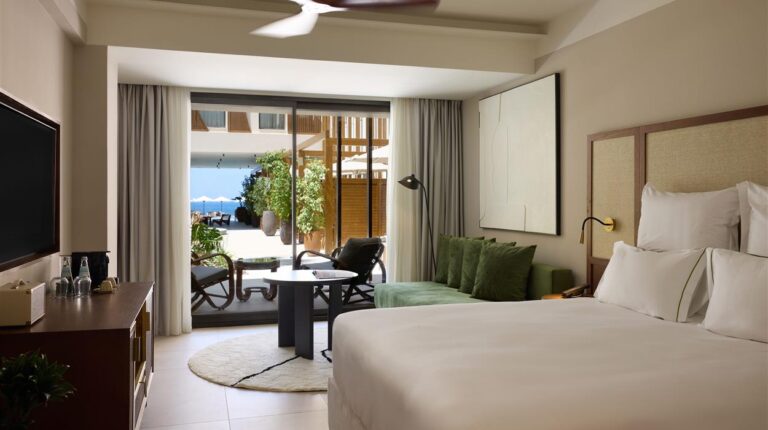 Aulūs Chania, Curio Collection by Hilton, is a sophisticated adults-only Ultra All-Inclusive resort that blends Domes Resorts’ modern design philosophy with Hilton’s Curio Collection character. Located along Crete’s sunny coastline near historic Chania, the resort provides a seamless holiday experience with gourmet dining, premium drinks, and curated leisure included. Guests can enjoy a variety of à la carte restaurants, relaxed beach and poolside bars, a tranquil spa, and stylish outdoor lounges, all without the need to plan or pay extra. Days are spent relaxing by the sea, floating above the water on the resort’s sea deck, or indulging in wellness rituals, while evenings feature sunset cocktails and immersive dining experiences. With elegant accommodation, attentive service, and a laid-back adults-only vibe, Aulūs Chania offers an elevated Ultra All-Inclusive escape rooted in comfort, flavour, and Mediterranean ease.