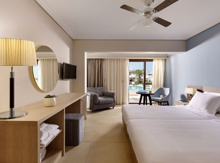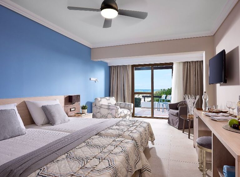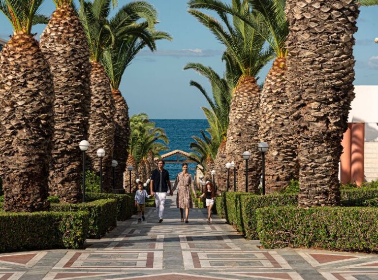 A true family haven, the Aldemar Knossos Royal Resort is a great choice for a fun filled family holiday on the island of Crete, with more than a touch of luxury thrown in. This resort adopts a village style layout, with Minoan style architecture, lavish gardens & 2-story bungalows as accommodation. The hotel is located directly on a beautiful stretch of pebble beach. First class facilities are on offer & there are plenty of activities for the whole family to enjoy including bingo, beach parties & cooking lessons. Lobster nights at the Fontana Amorosa Restaurant are not to be missed. Children have their own dedicated organised activities & entertainment & are more than well catered for. With the option to stay here on All Inclusive, this gorgeous & very popular family resort has everything you need to have the holiday of a lifetime.