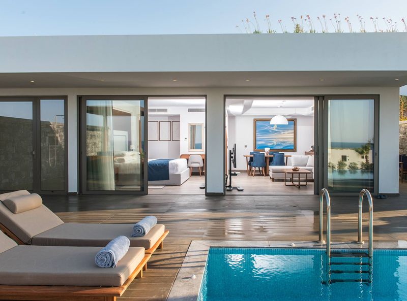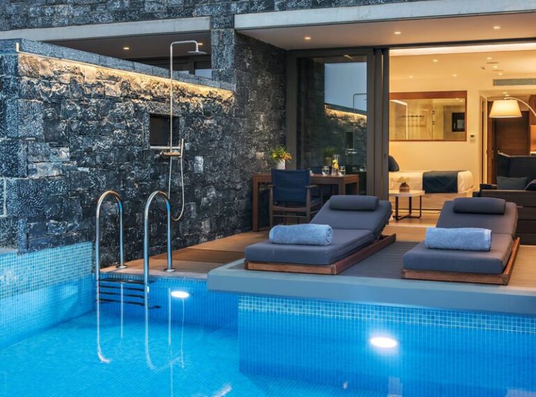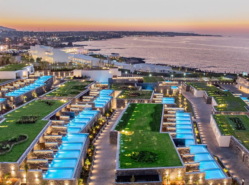 Nana Princess is a truly exemplary 5-star beachside resort in Hersonissos, Crete, that aims to take luxury and personalised service to another level. The resort is contemporary in design with every aspect expertly designed and finished to the highest standard. Guests will enjoy the lavish spa centre as well as the high-tech fitness studio, 2 outdoor brackish water pools and family friendly leisure facilities. The dining on offer is of the highest standard. This resort is a feast for all the senses. There are only 102 units of accommodation here, all being very spacious and lavishly furnished, with most of the suites featuring a private pool or whirlpool. There is also a long stretch of gorgeous sandy beach which is for the sole enjoyment of hotel guests, making this the ideal choice of hotel for an exclusive and relaxing beach escape with VIP service in Crete.