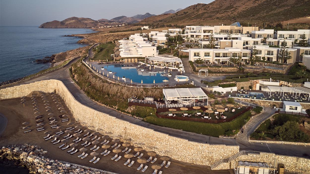 The Royal Blue Resort & Spa is a sophisticated five-star seaside retreat designed to embody the charm of a traditional Cretan village while providing refined modern luxury. Situated directly on the waterfront near Panormos, the resort offers stunning sea views, private beaches, and a laid-back, adults-friendly atmosphere ideal for couples and families alike. Guests can choose from a wide range of accommodation, including private pool suites and villas, exquisite dining experiences centred on Mediterranean flavours, and a comprehensive spa and wellness facility. With its marina, landscaped gardens, attentive service, and tranquil coastal setting, The Royal Blue Resort & Spa delivers an elevated Cretan escape where relaxation, privacy, and authentic hospitality seamlessly come together.