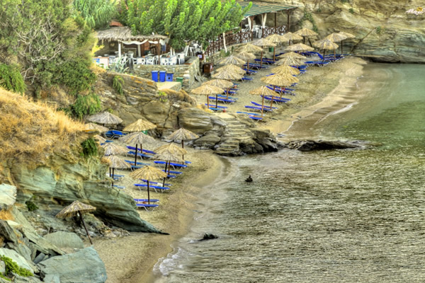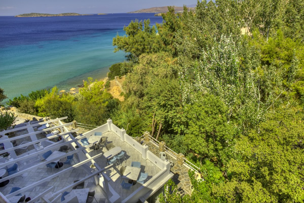 The boutique Aneroussa Beach Hotel occupies a rather unique position, set on slightly elevated ground, above a small cove with a virtually private sandy/small pebble beach, giving way to crystal clear, still waters. Given its location, all 30 rooms and the hotel verandas offer unobstructed sea views and spectacular sunsets. The hotels gardens and surrounding natural beauty adds to its splendor and charm. The traditional and picturesque fishing village of Batsi, less than 1km away, features authentic Greek tavernas, bars, gelaterias and coffee shops.