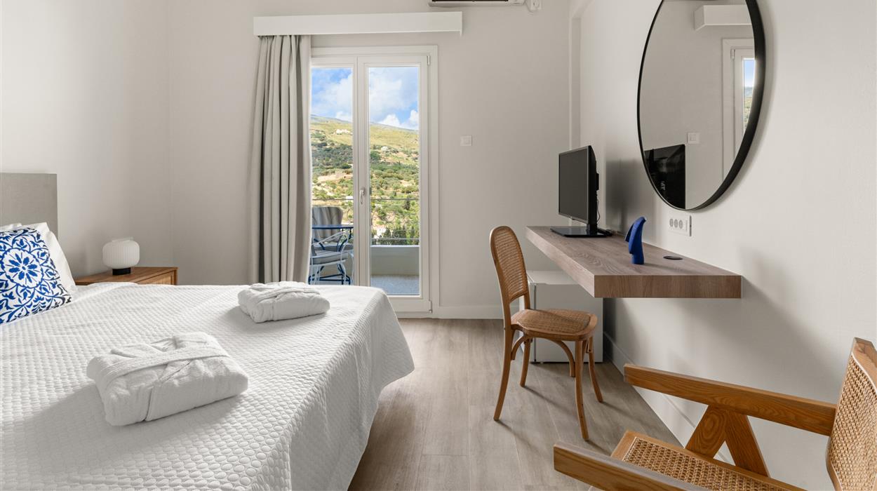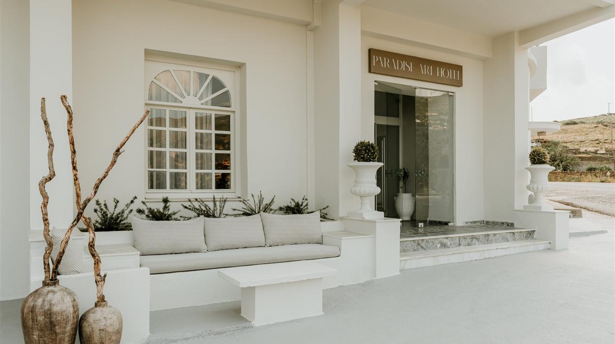 Andros is one of the greenest and most beautiful of the Cyclades islands and the Paradise Art hotel is ideal to help visitors truly appreciate the serenity and charm of the island. This uncluttered, minimalistic yet elegant hotel is located in Andros town and within walking distance to 2 beaches. As its name would suggest, the hotel exhibits sculptures and works of art produced by local artists within the lobby area, showcasing Andros long standing history as a hub for the arts.