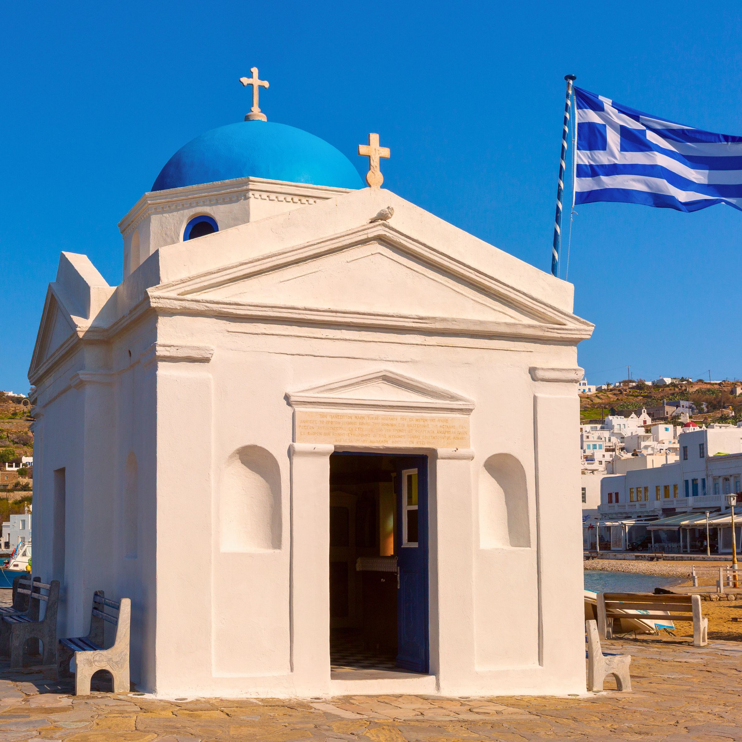 Mykonos is part of the Cyclades islands and is located in the Aegean Sea. It is one of the most popular destinations among the Greek islands, situated approximately 150 kilometres from Athens. The capital of the island, also named Mykonos, is renowned for its narrow cobblestone streets and vibrant blue and white colours. The island covers an area of 105 square kilometres and has a population of just over 10,000 residents.