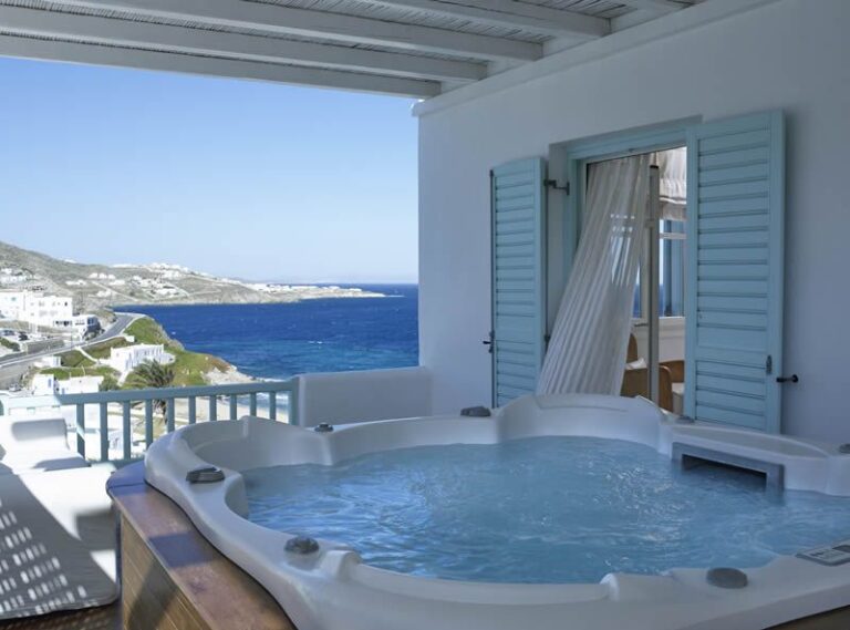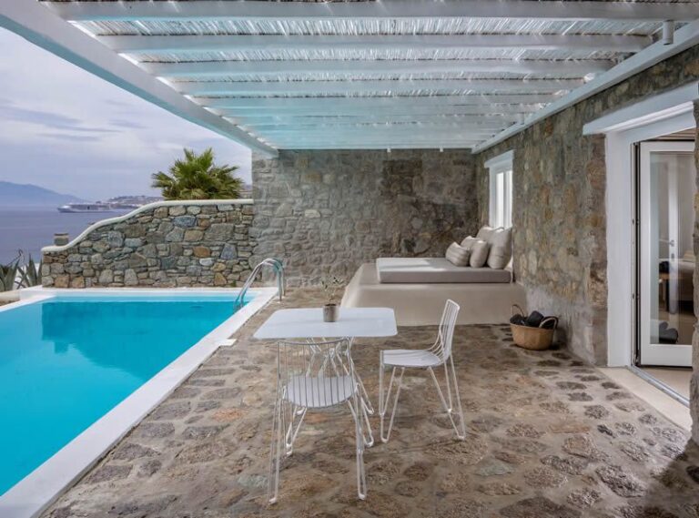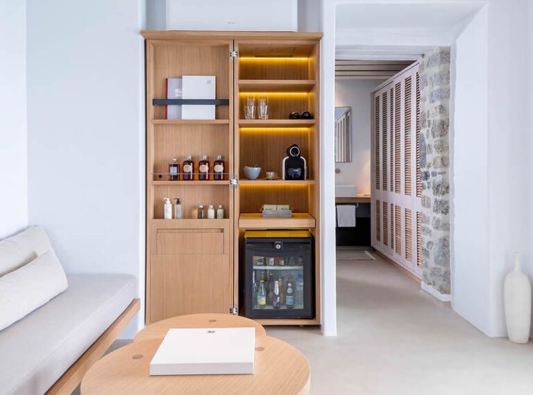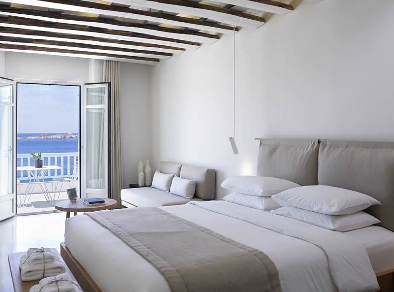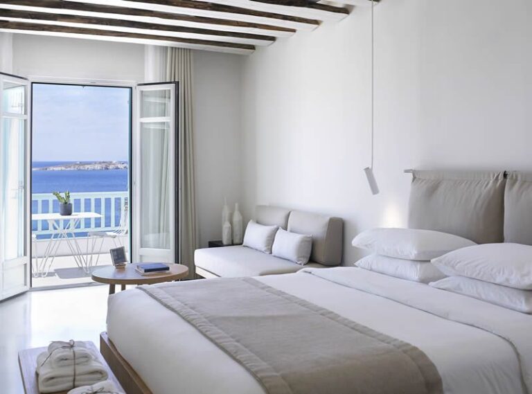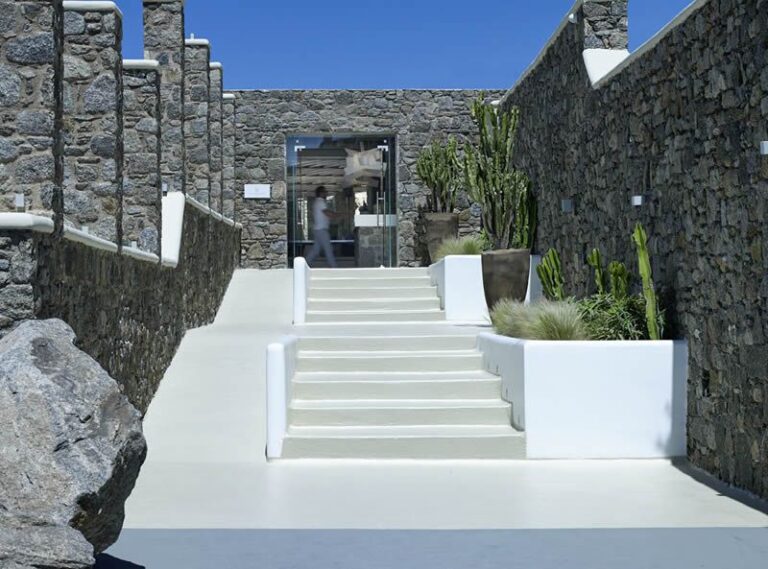 Bill&Coo Mykonos is the archetypal boutique hotel & haven for romance in Mykonos. The gastronomy restaurant serves exquisitely refined & creative cuisine whilst the relaxed lounge bar serves some of the most inventive cocktails in Mykonos. The Valmont Spa is carved into the hillside of Megali Ammos and provides a perfectly intimate setting for a couple’s massage. Each of the 32 suites here is positioned towards the famed mystical sunset. Bill&Coo Mykonos is located above the beach of Megali Ammos & is just a short walk to Mykonos Town centre, where you can enjoy the quaint cobbled streets, boutiques, sumptuous restaurants & classy bars. Guests can access Bill&Coo’s private beach on the sheltered cove of Agios Ioannis.