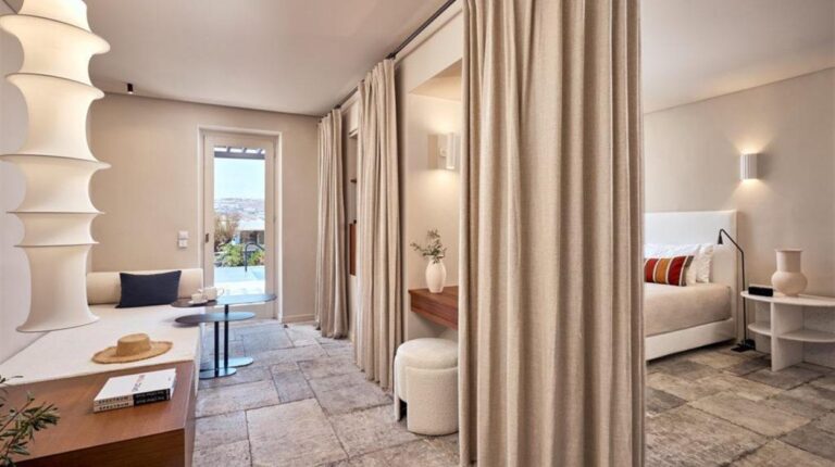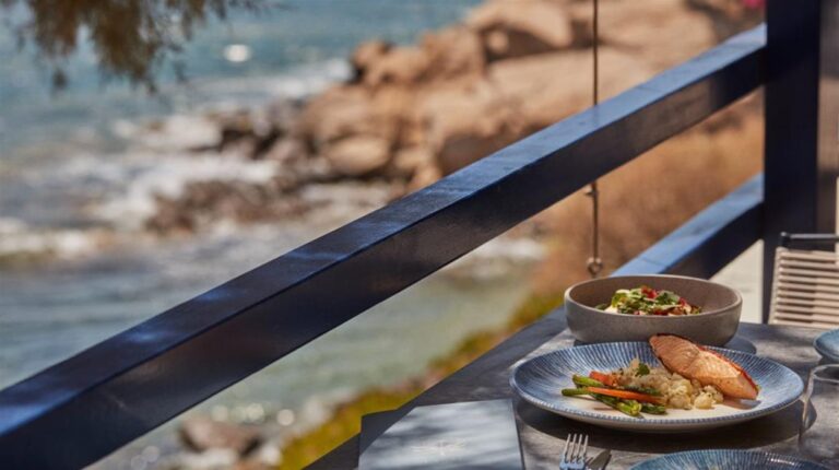 The 5-star Mykonos Theoxenia is one of the longest serving and one of the most renowned boutique hotels on the island of Mykonos. Having opened over 50 years ago the hotel has hosted celebrities and A-listers over the decades and the hotel still retains a charm and its design inspiration from the 1960s, albeit refurbished with a modern twist and comforts. The Plate restaurant is one of Mykonos best restaurants, serving gourmet Mediterranean cuisine which guests can savour in the stylish restaurant itself or in the comfort of the room.