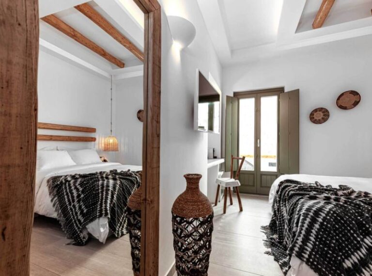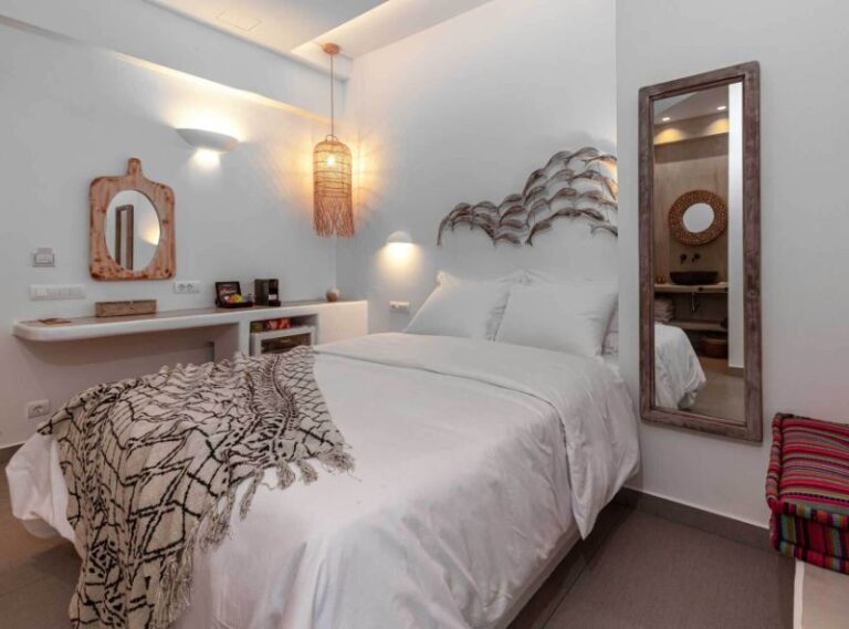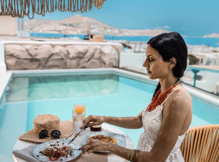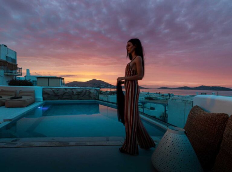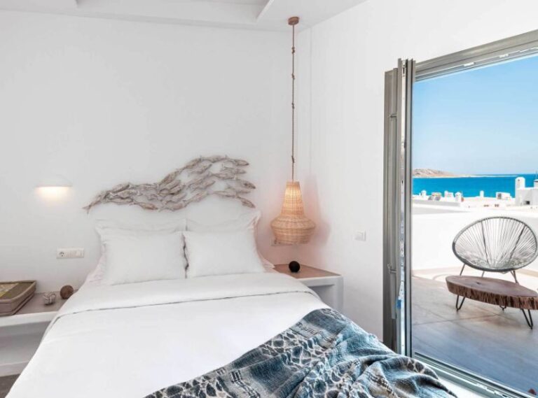 This contemporary hotel provides a chic setting for your Paros island getaway and is tucked away in the historic Greek fishing hamlet of Naoussa. The 4* Bohemian Luxury Boutique Hotel has all the amenities you could need to have the ideal relaxing stay, with specially designed rooms that offer a classic vibe with eccentric decor. Your time here is sure to be peaceful with a private pool that faces the serene Aegean Sea, and there are even massage treatments available to help you feel relaxed and tranquil. Enjoy your days lounging by the pool or sipping refreshments at the pool bar, before exploring the charming village with its classic traditional white-washed houses and cobbled streets.