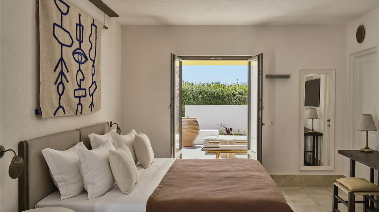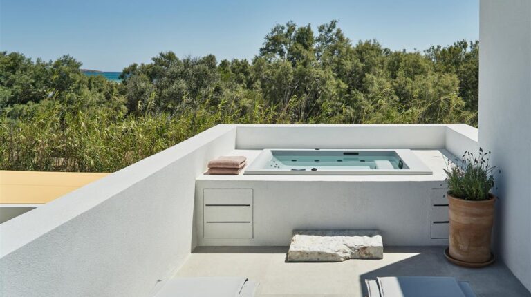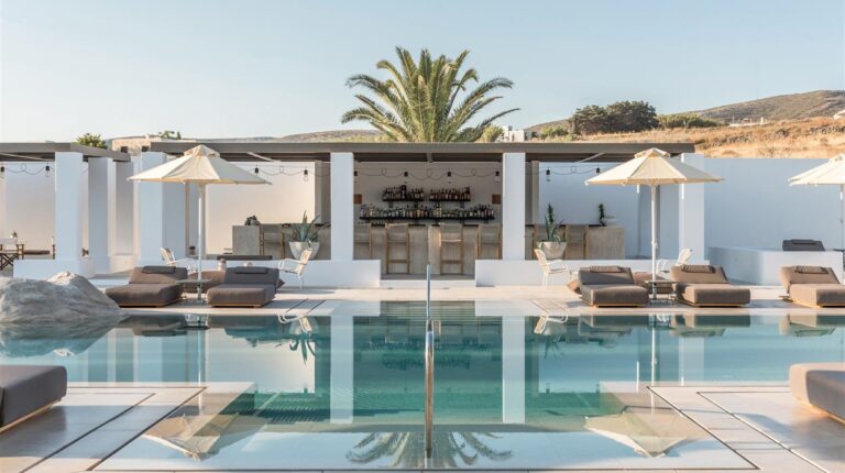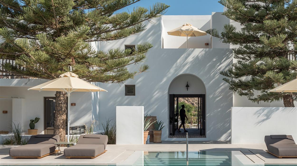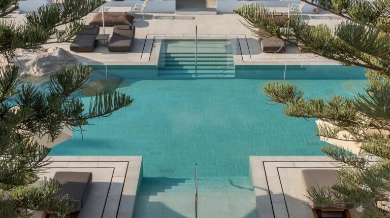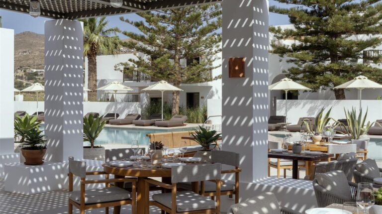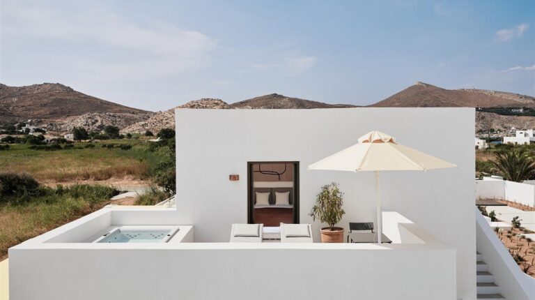 Named after parhelion, an optical illusion where bright spots appear on one or both sides of the sun, Parilio is an all-suite retreat characterised by Cycladic architecture and influences. Elios Spa (named after the Greek word for sun) is a serene escape, with an extensive selection of treatment options inspired by Aegean tradition. Meanwhile the twice awarded with 2 Michelin stars chef Thanos Feskos follows sustainable practices to provide high-quality cuisine.