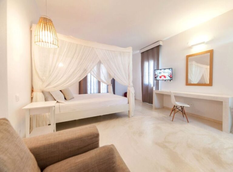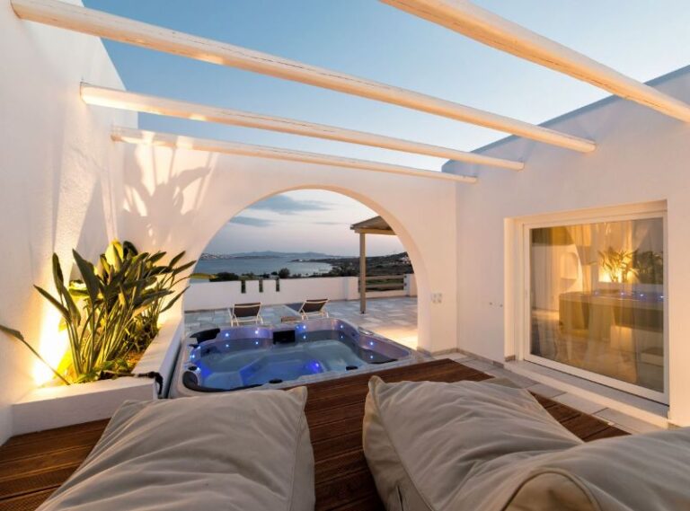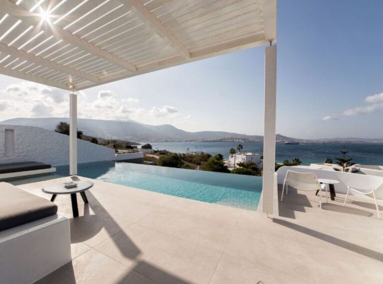 The Paros Agnanti Resort & Spa is located at the entrance of the gulf of Parikia, offering guests panoramic views of the sea and of the picturesque town within the island. Set in an overgrown area of 35 acres, the hotel is just 80m away from the famous Krios and Marcello beaches and 2.5km from Parikia (Krotiri Area). The complex of Paros Agnanti consists of five Cycladic architectural style buildings built on equal hills and are perfectly harmonised with the natural landscape. Guests can dine at the hotel’s on-site Coeli Restaurant or relax and replenish at the Olivia Spa