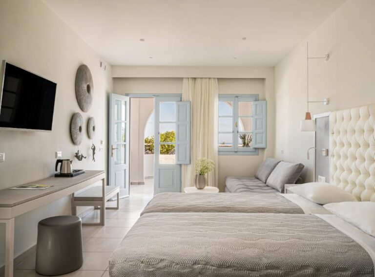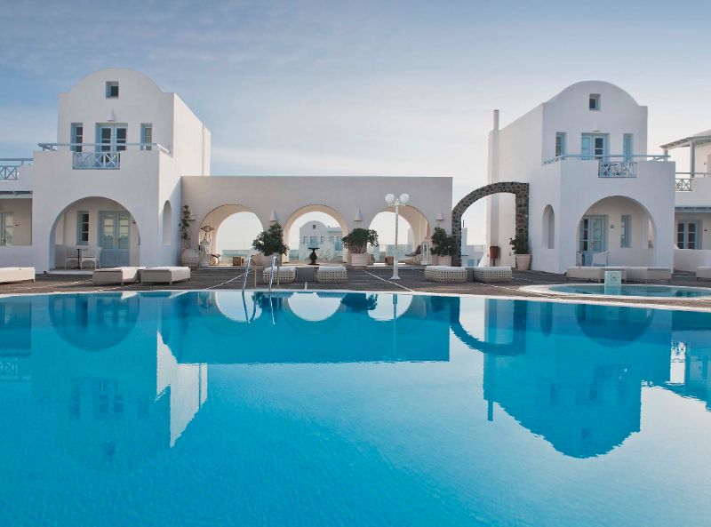 The El Greco Resort in Santorini is a stylish and modern hotel and one of the most prestigious on the island of Santorini. The design of the hotel and accommodation is typically Cycladic and minimalist, yet fashionable and luxurious at the same time and the hotels staff pride themselves on excellent service, leaving you with a sense of belonging. The hotel is just minutes away from the islands capital Fira where you can enjoy a vibrant and exciting atmosphere and Monolithos beach is 7km away. The El Greco Resort provides an ideal setting to fully appreciate one of the most romantic islands in the world.