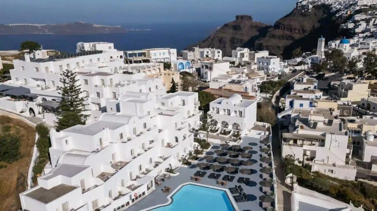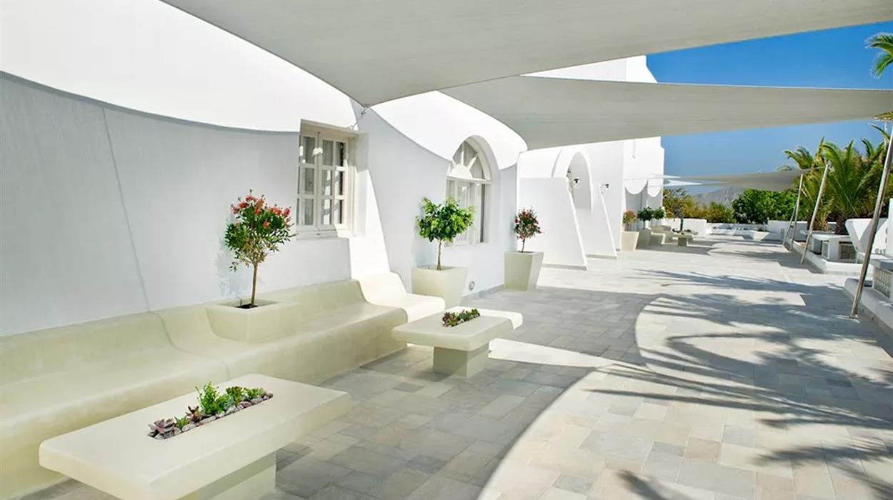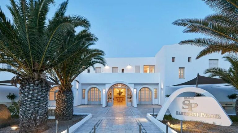 Santorini Palace is a 4-star hotel with typical Santorini charm. It boasts an ideal location in the village of Firostefani, just a short walk away from the islands capital of Fira and its many restaurants, bars and tourist attractions. There is an outdoor pool, Free WiFi, fitness centre and a spa centre that is located at the nearby sister hotel El Greco Resort for those who want a little extra pampering. Along with friendly and personal service, Santorini Palace provides a relaxed environment, so guests can enjoy the delights of this gorgeous Greek island in comfortable surroundings with a great location.