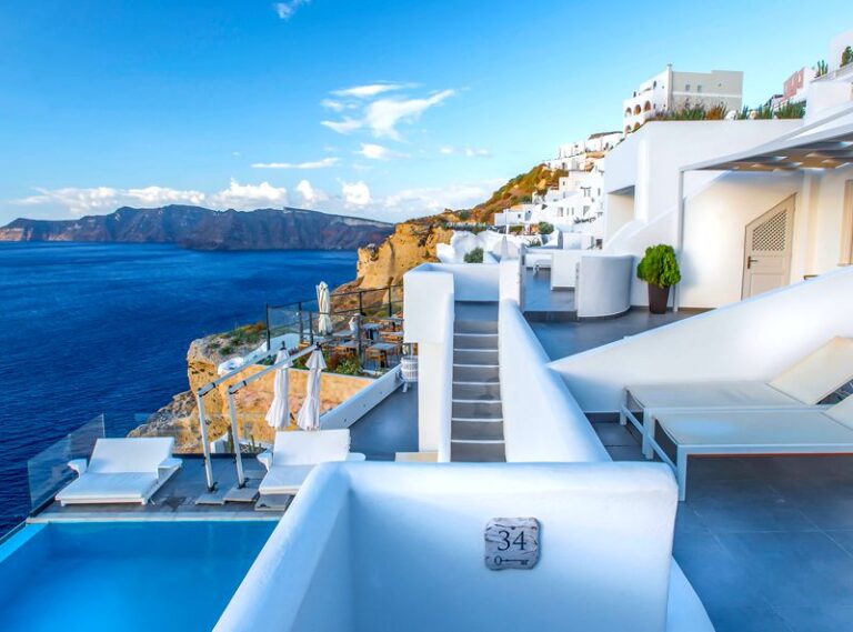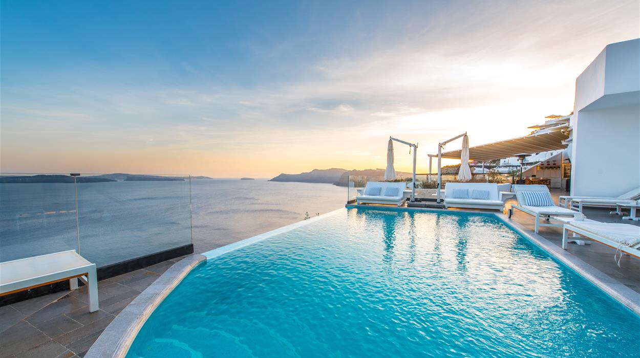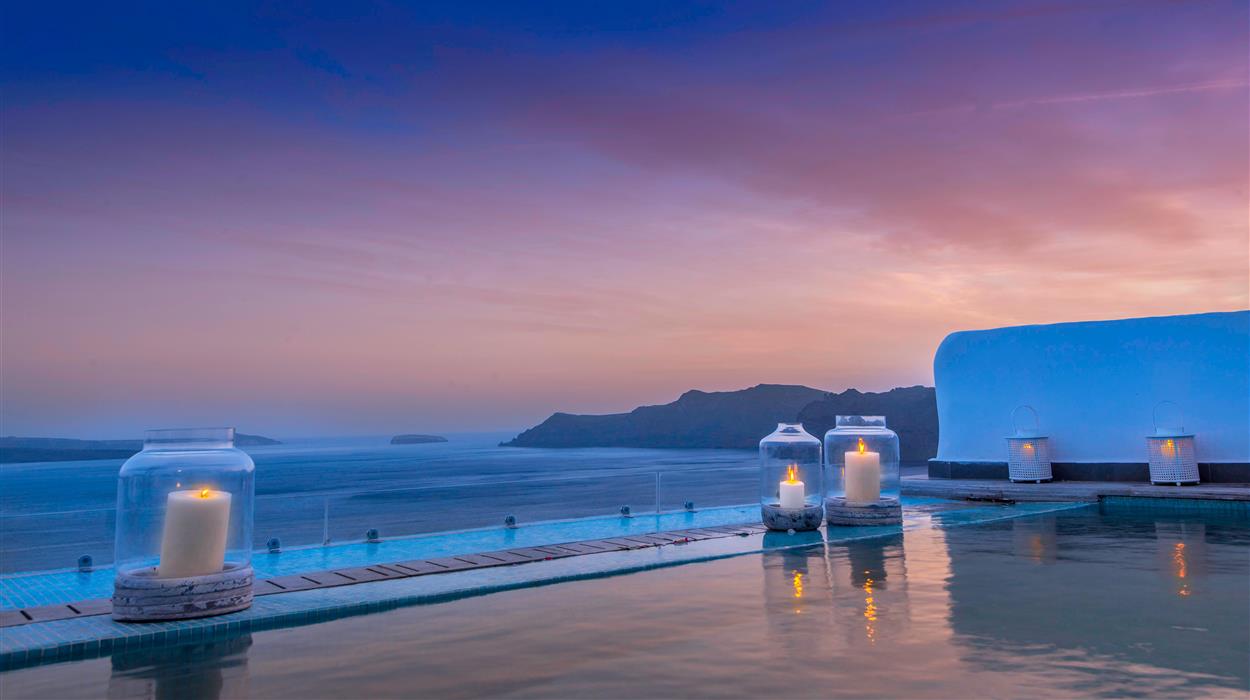 Santorini Secret Suites & Spa is a 5-star adults only luxury hotel situated in Oia, and is a proud Member of the ‘Small Luxury Hotels of the World’ collection. Ideal for a luxurious getaway, this hotel of only 17 Suites and 1 Junior Villa offers everything that you want from a once in a lifetime stay in one of the most romantic destinations in the world. The hotel features an infinity pool that looks out to the Aegean Sea and the amazing Caldera, and spa services that can be enjoyed either within the spa or in the privacy of your suite. Enjoy your breakfast that is delivered to your suite in the morning, enjoy light meals and cocktails throughout the day by the pool and relish a gastronomic meal at the Black Rock restaurant in the evening. There are even in-house wine and food tasting experiences to savour. In typical Cycladic style, the suites are luxurious yet minimalistic and each suite has its own private pool or Jacuzzi. Santorini Secret Suites & Spa truly does have all the ingredients for the perfect romantic escape.