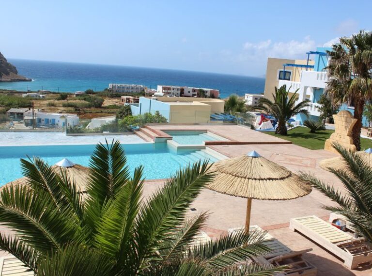 The Arkasa Palace Boutique Villas is a modern and stylish boutique property, offering selfcatering accommodation on the beautiful island of Karpathos. The hotel is an 8-minute walk from the beach and offers a delightful swimming pool and comfortable accommodation to make your stay pleasurable and relaxing. The Arkasa Palace is a 5 minute walk from Agios Nikolaos Beach too. Guests can look forward to exploring the Arkasa village from this fantastic property and take part in activities including hiking, cycling and watersports.