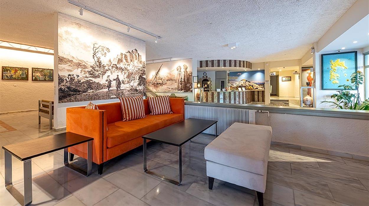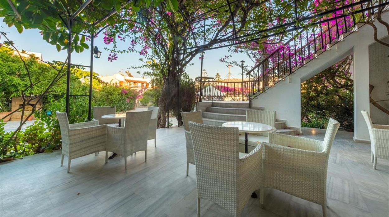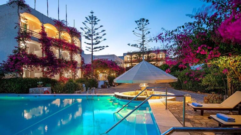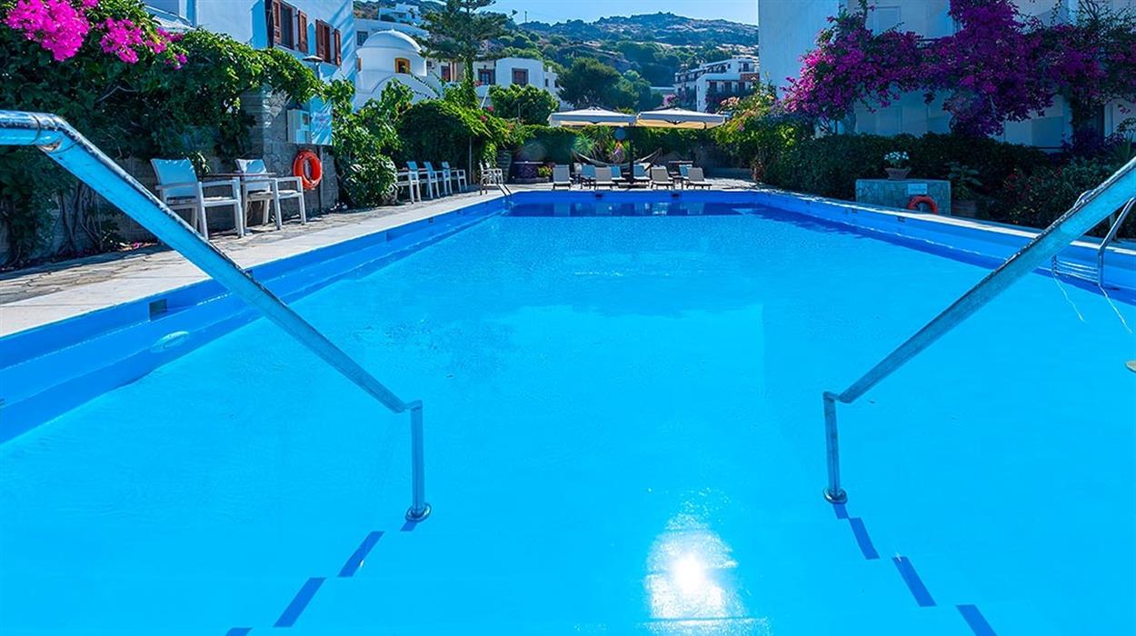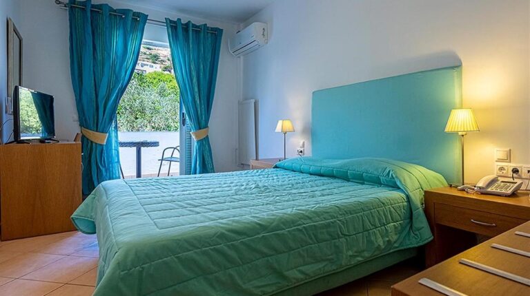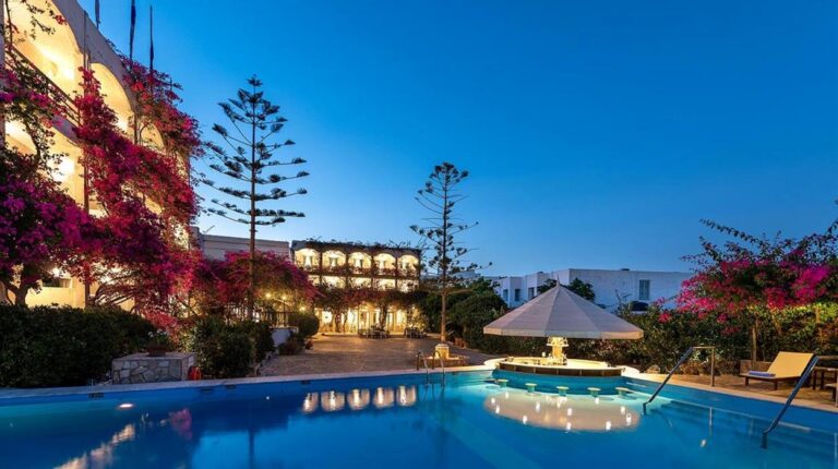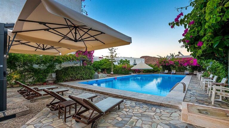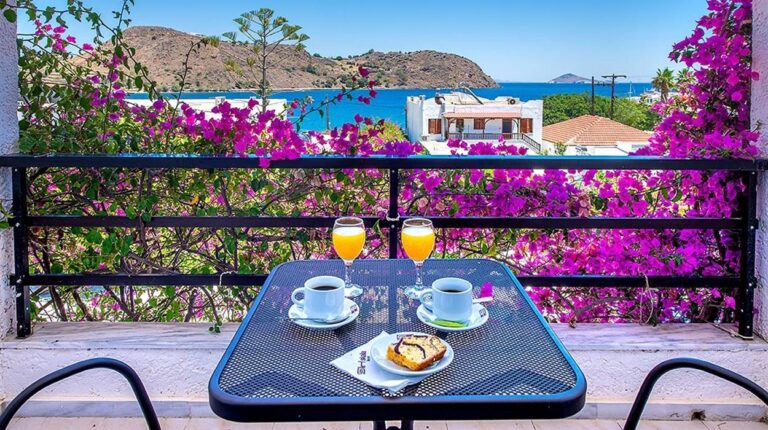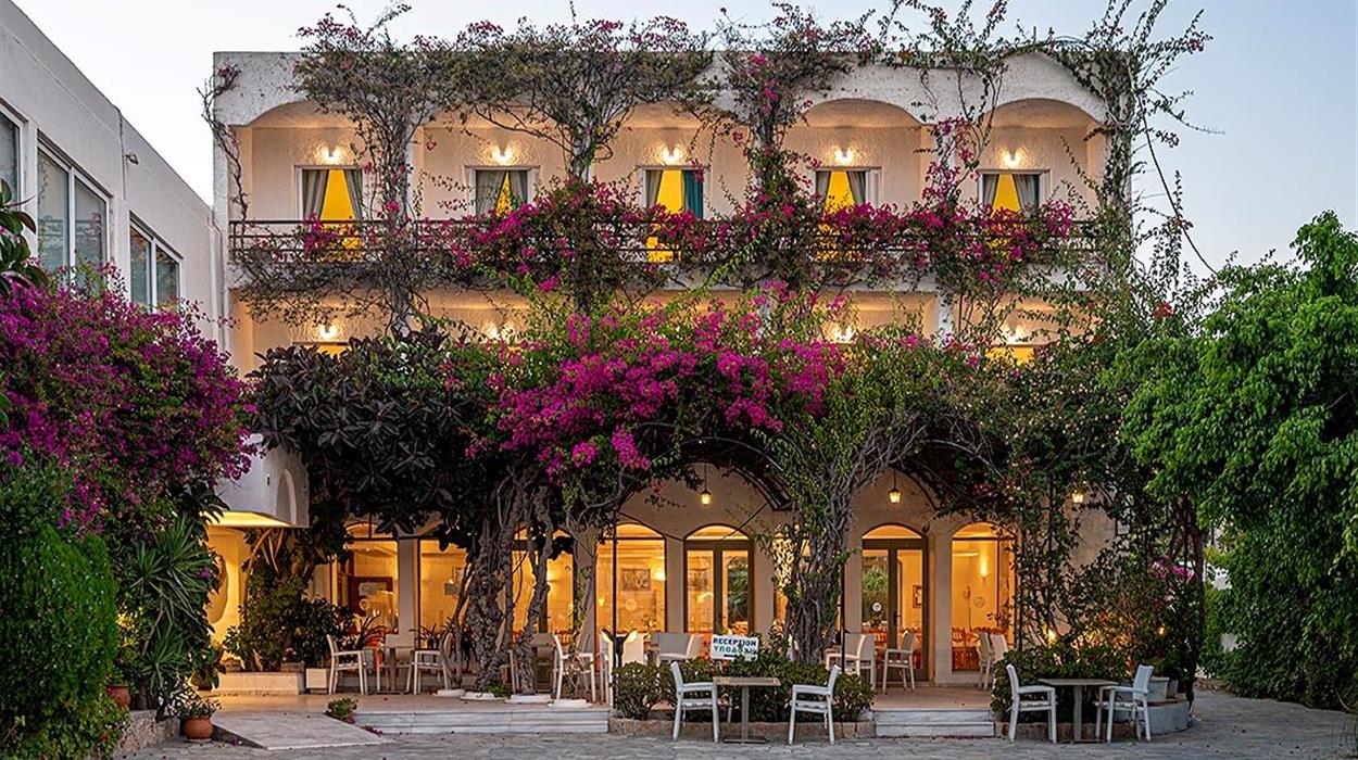 Skala Hotel sits in the heart of Patmos near the islands main port. Surrounded by gardens and just a short walk from Skala village shops and tavernas, this welcoming hotel has a peaceful atmosphere. Guests can relax by the pool, enjoy homemade breakfasts and explore the nearby beaches and famous Monastery of St John. Friendly service, comfortable rooms and a convenient location make it a good choice for couples and families visiting Patmos.
