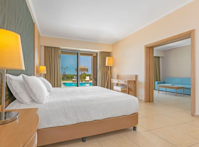 The luxurious Kresten Royal Euphoria Resort promises a regal sanctuary and absolute tranquility by the sea. The spa places your wellness at the core of all its services and offers a wide range of treatments. Take advantage of the yoga courses to start your day with the utmost harmony, then indulge in good food at one of the excellent restaurants on offer. You can decide whether to go all inclusive or enjoy bed and breakfast and dine out during your evenings. There are also several room and suite types available, so there are ample options to meet your requirements. The hotels location just 3 miles from the medieval old town of Rhodes makes it a great spot for venturing out to explore the town, its cultural splendour, community and vibrant history.