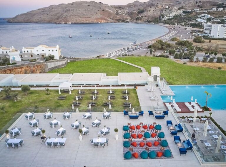 In the wonderfully presented Lindos Grand Resort & Spa, stylish rooms and suites with luxurious amenities and contemporary sophistication coexist, some with private pools for your absolute relaxation and enjoyment. There are exquisite dining options, with cuisine ranging from Greek to Italian, Asian and Oriental. Enjoy a meal outside as the sun sets and take in Rhodes allure or enjoy some shisha as you chill out at the Sky Lounge. The town of Lindos is only 4km away, which makes it ideal for exploring the region beyond, that is if you manage to take yourself away from the fantastic spa facilities, entertainment, experiences and sports available at this beautiful adult-only paradise.