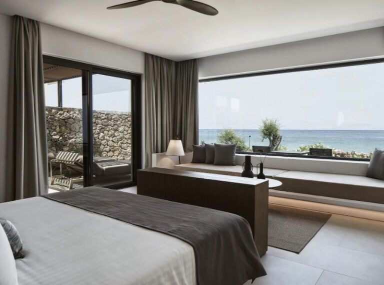 The 5* Olivar Corfu Suites comprises 120 luxurious suites built on a converted, late 18th century olive oil mill, and encased by the deep blue of the Ionian sea and luscious green olive trees. Combining traditional and modern, the hotel is close to the beach and a few minutes from Messonghi village. The hotel is committed to a sustainable philosophy by consuming local produce and using eco-friendly and organic materials wherever possible. The Spa is the perfect place to relax, offering a range of traditional and more innovative treatments. The Flya restaurant combines a delicious blend of Corfiot, Greek and Mediterranean cuisine. Other dining options include private rooms and romantic picnics.