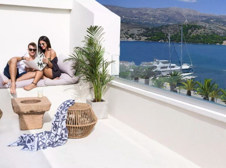 The design-led, boutique property offers a different perspective of the stunning island of Kefalonia. This charming hotel lies in the heart of the islands capital, Argostoli, overlooking its bay and within walking distance to all of its highlights, shopping areas and best beaches. The hotel is modern and minimalistic in design but offers guests quality throughout, from the spa centre, to the signature KG Restaurant with its mouthwatering menu and the Grand Café where you can enjoy exquisite cocktails whilst looking out to the bay and people watching. The Kefalonia Grand Hotel is a base from which you can explore this magical island in style, comfort and grace.