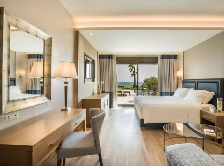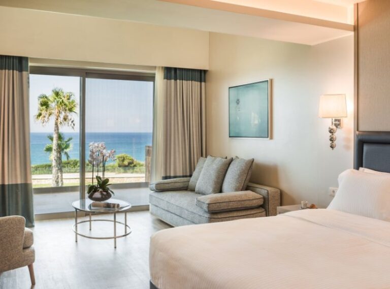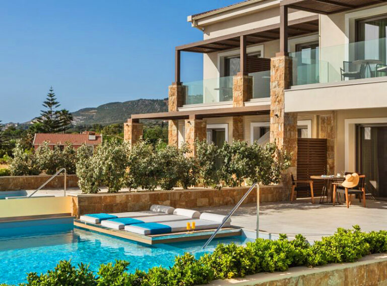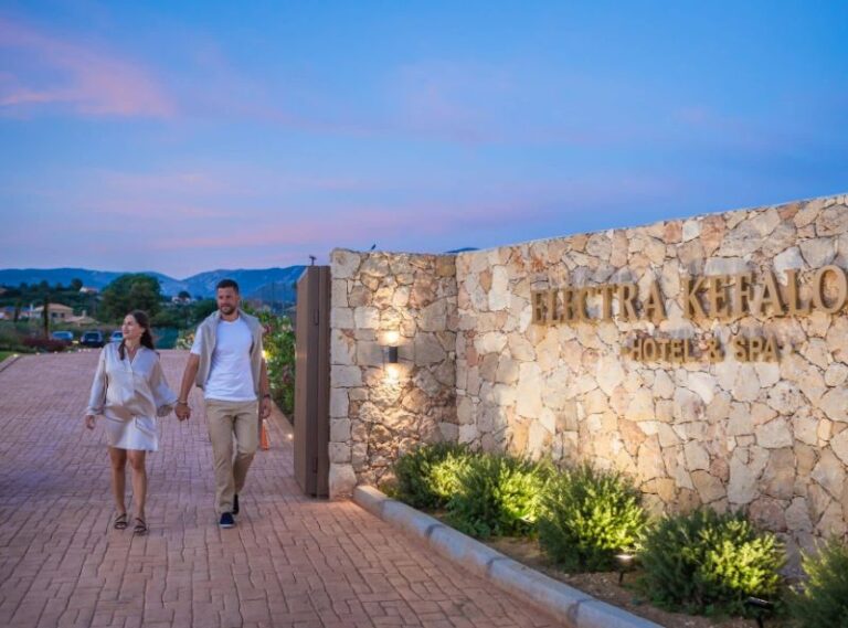 At the Electra Kefalonia Hotel and Spa, you can enjoy the splendour of Kefalonia. The hotel is located just a few minutes’ drive from the island’s capital, Argostoli, and overlooks the gorgeous Ionian Sea. The outdoor pool is a refreshing refuge in the heart of the hotel, the ideal spot to enjoy some sun while admiring the expansive sea vistas. Fitness fans can unwind by working out in the hotel’s fully equipped fitness centre. The hotel also features one of the island’s few premium spas with first-rate equipment, relaxing treatments and sauna/steam room facilities. Begin your day with a delicious breakfast by the pool; later, for lunch and supper, a variety of Greek specialities and worldwide classics are available. To offer an authentic dining experience, delectable dishes are prepared utilising local products. If you wish to venture out of your hotel, you have to visit Myrtos Beach, its stunning white sands and blue waters making it one of Greece’s most popular beaches. There’s also Fiskardo, a former fishing village which now is recognised as a cosmopolitan destination, and Assos, a picturesque village. Regardless of how you spend your stay at Electra Kefalonia Hotel and Spa, you can look forward to breathtaking sunsets and beautiful ocean scenery that you will treasure forever.