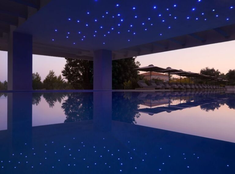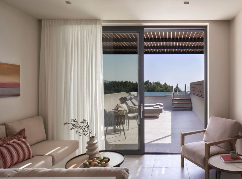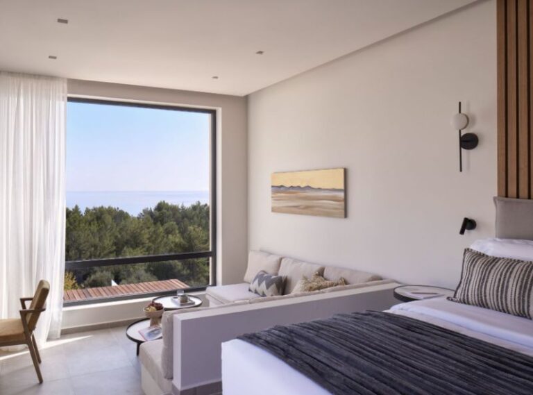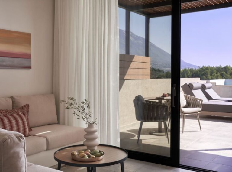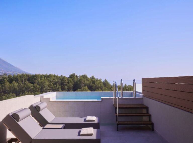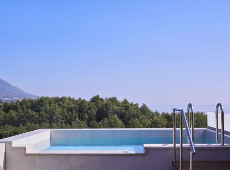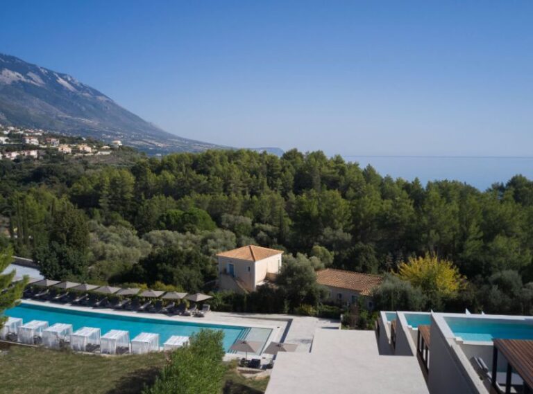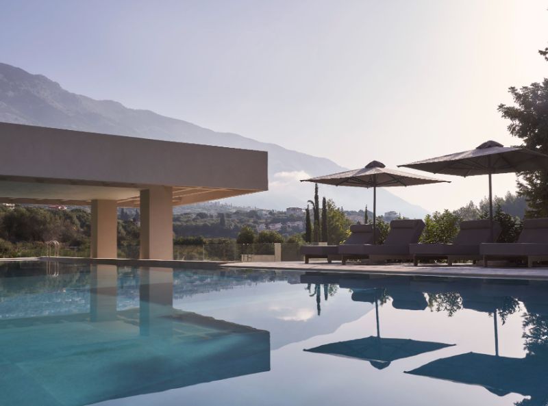 The Celestial Suites is a serene hideaway of just 40 luxurious suites, each featuring its own private pool and a large fully furnished terrace. The hotels interior design is contemporary and oozes luxury, creating an ambiance of calm which is further enhanced by the fact that the hotel only accepts guests over the age of 15. The hotel is nestled in the lush green forest of Mousata and overlooks the deep blue Mediterranean waters; Trapezaki beach is just a short distance away. This is the perfect destination for couples or single travellers to enjoy the beauty of Kefalonia in a high-end, grown-up environment.