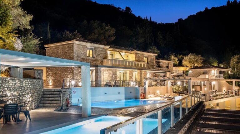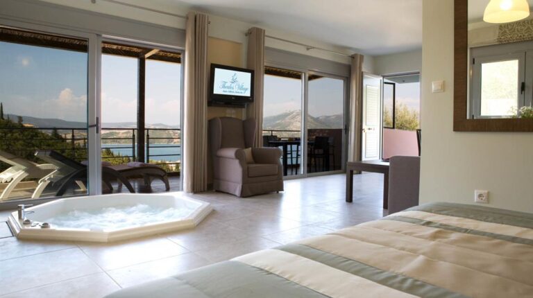 Thealos Village Resort is a 5-star hotel set on an elevated region of Lygia, Lefkada. The hotel has 11 luxury villas, suites, and apartments. Every accommodation has incredible views of the Ionian Sea and daily breakfast included. Due to the elevated nature of the hotel, you will enjoy a quiet and peaceful stay away from the noise of the streets. In addition, Lefkada has up to 42 beaches, giving you the freedom to find the perfect spot to relax and unwind. Families will also enjoy the onsite kids area, which includes a full-equipped playground with slides and swingsets.