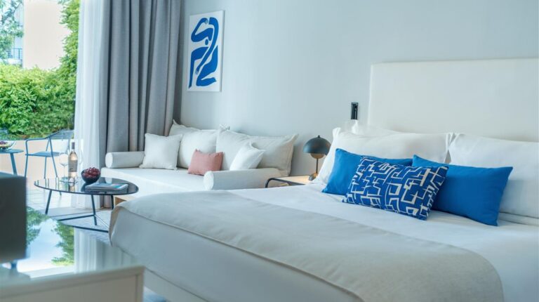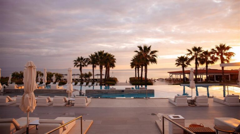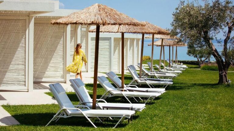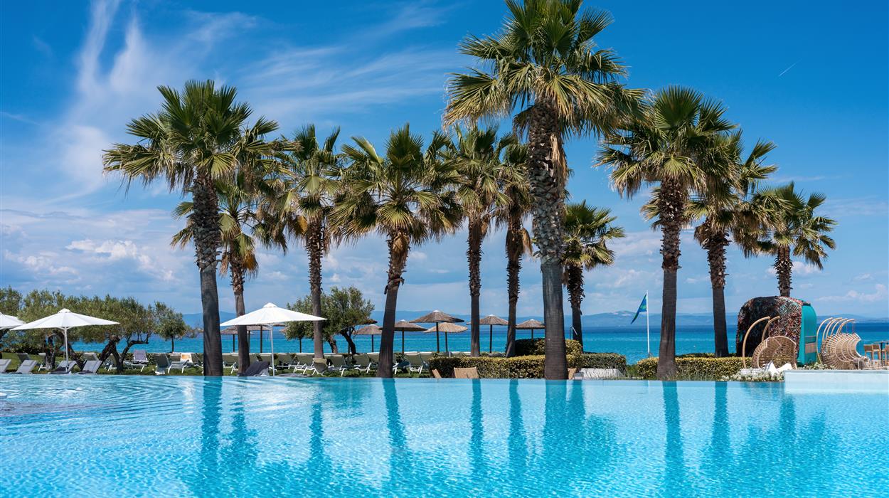 Embark on a journey of elegance at Domes Noruz Kassandra, an adults-only sanctuary situated near the quaint heart of Hanioti Village. A mere 50-yard stroll unveils the up-and-coming lifestyle district, while a private Blue Flag beach awaits to cradle your senses in Aegean serenity. At the core of this luxurious retreat lies a mesmerising swimming pool, encircled by a lush palm garden, where each sunbeam invites you to bask in tranquillity.