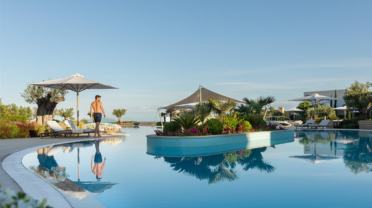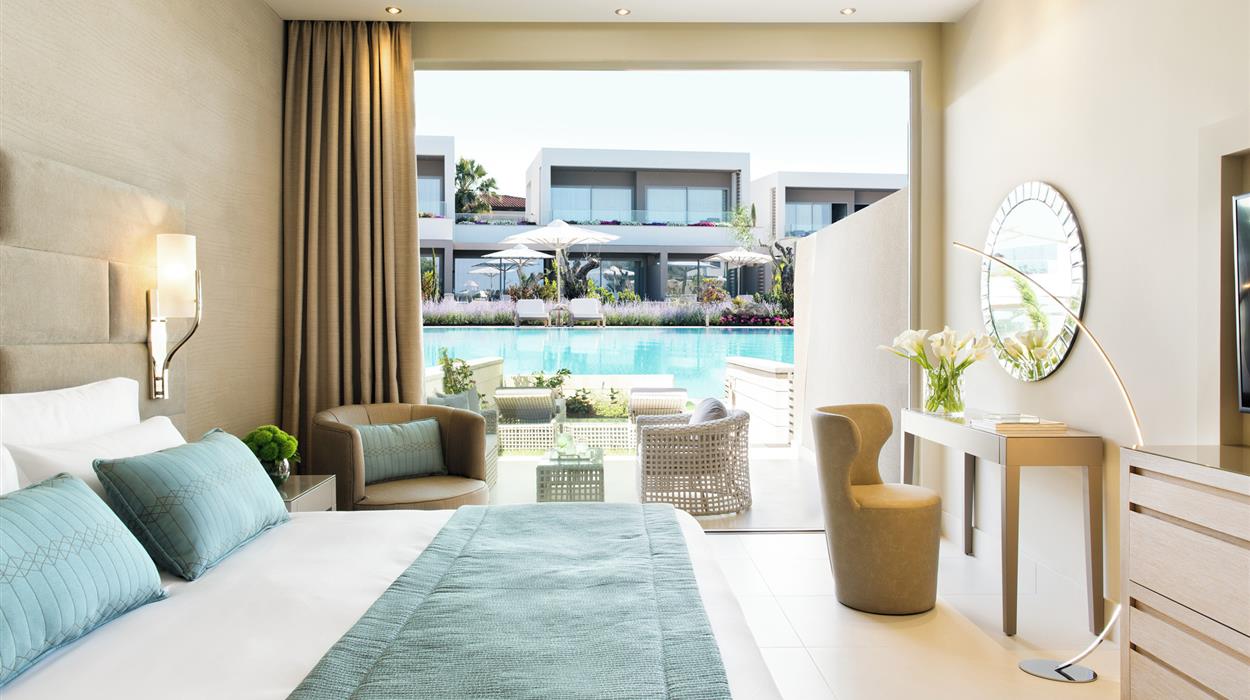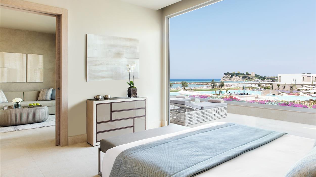 There are 146 rooms and suites at the Sani Dunes, overlooking the magnificent Sani Dunes pools, Sani Marina, or the Aegean Sea. Includes Double and Family rooms, One Bedroom Grand Balcony Suites, Junior Suites, Deluxe Junior Suites, Deluxe One Bedroom Grand Balcony Suites, and Deluxe Family Suites. Rooms feature a private balcony or terrace, Wi-Fi, air conditioning, satellite TV, DVD/CD player, minibar, safe, tea and coffee making facilities, hairdryer, and luxury bathroom amenities.