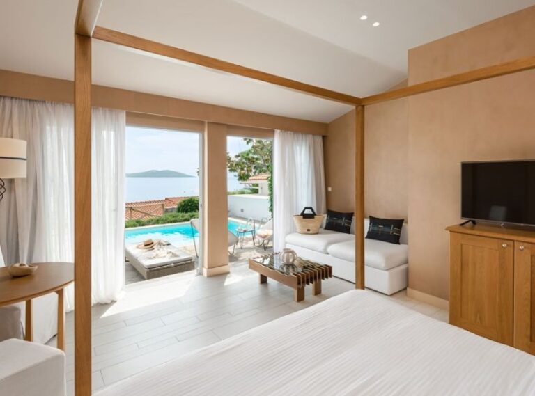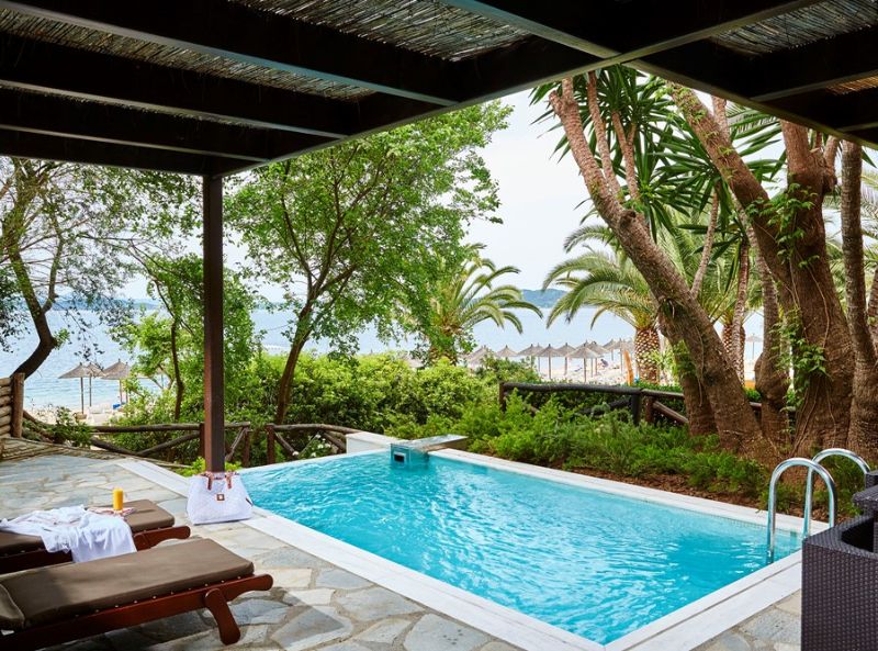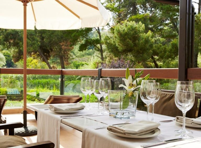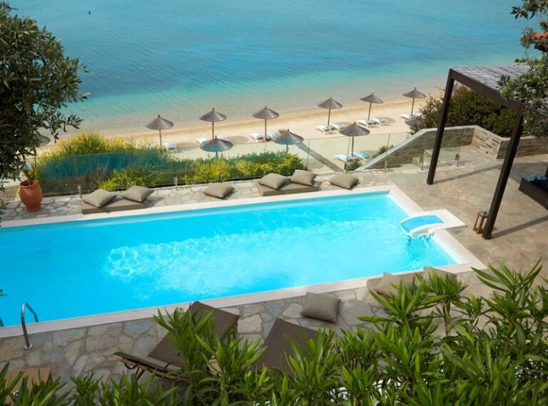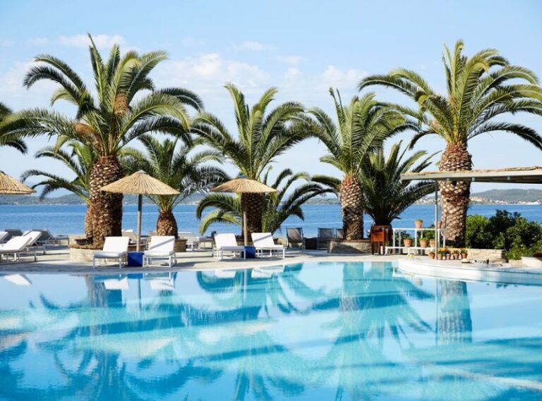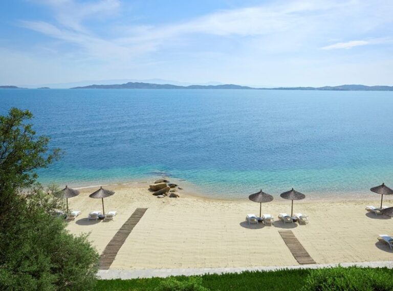 The 5-star award-winning Eagles Palace is set on a private sandy beach with lush gardens of olive, palm & pine trees & offers spectacular bay views. The hotel is built on the third & most romantic peninsula Mount Athos, just 4km away from the charming village of Ouranoupolis & close to the monastic holy Mount Athos. It has an extensive selection of restaurants & bars, a beach water sports centre, a relaxing spa by Elemis, & a selection of boat trips & private yacht excursions allowing guests to explore the legendary beauty of the area.