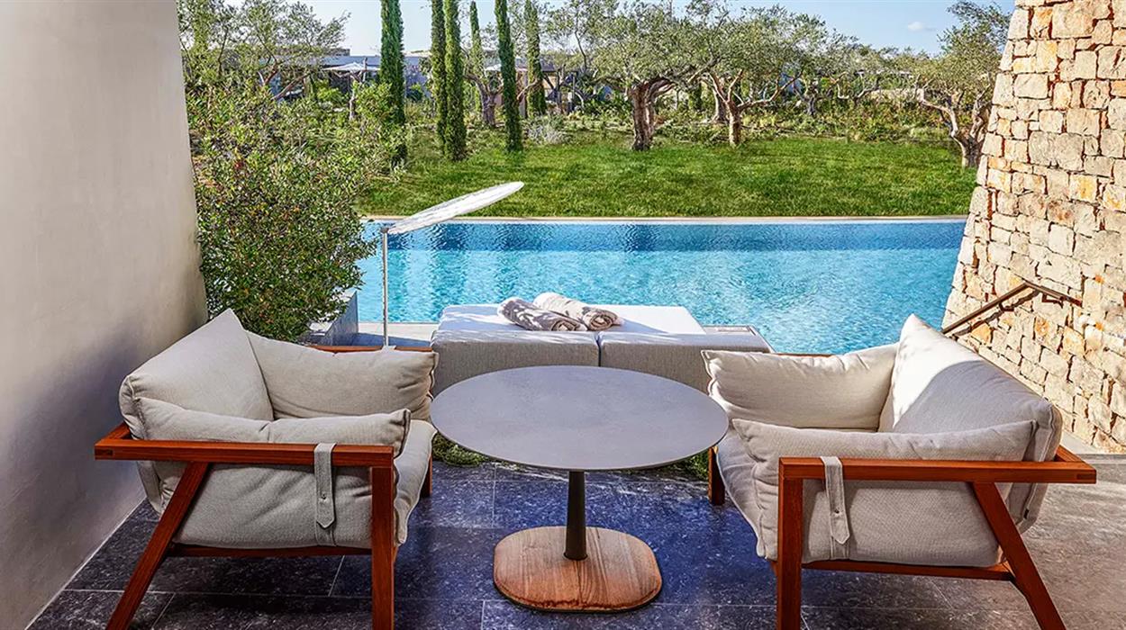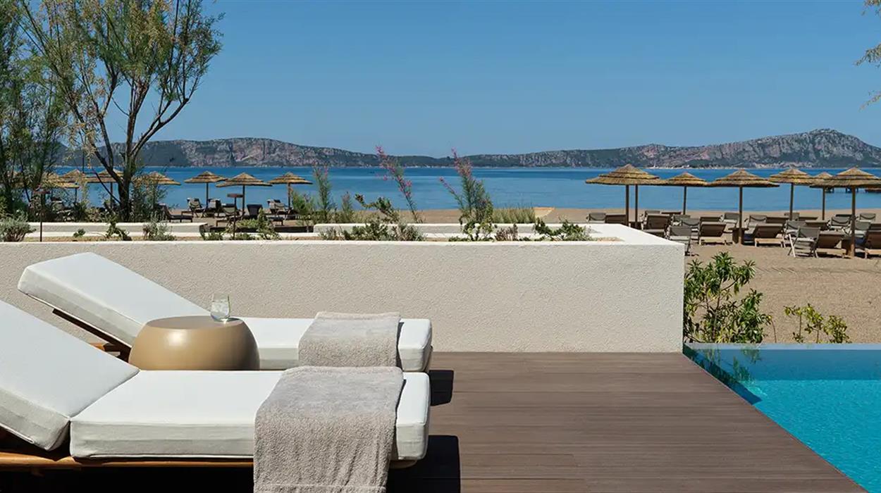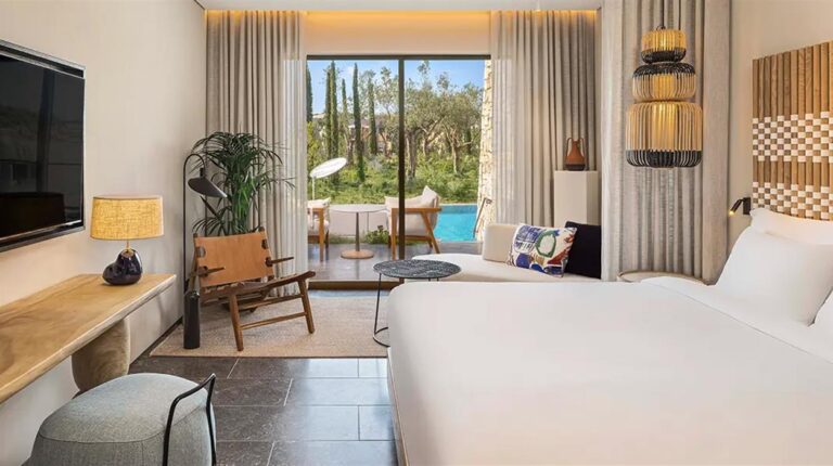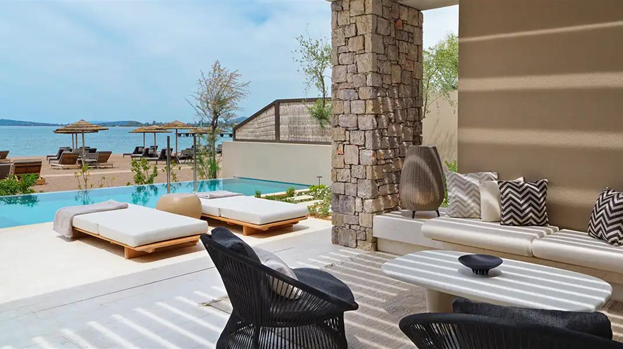 W Costa Navarino marks the debut of W Hotels in Greece. The Escape, exclusively for adults and young adults over 12 years old, brings contemporary design and inspiring energy to the Navarino Bay area. Vivid and bright, with a distinctive design inspired by the regions architecture, W Costa Navarino shows stylish accommodations with swim-up rooms, airy one and two-bedroom suites with their own pools, and fantastic beachfront villas with their private pools set against the stunning Ionian sunset. Playful public spaces, five dining venues, including a vibrant Beach Club, a wellness area with AWAY® Spa and FIT gym to fuel body and mind, together with inventive yet authentic cuisine and welcoming service, create a socially driven destination any time of the day