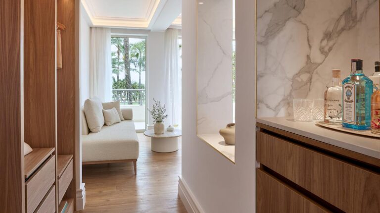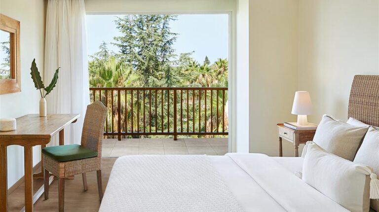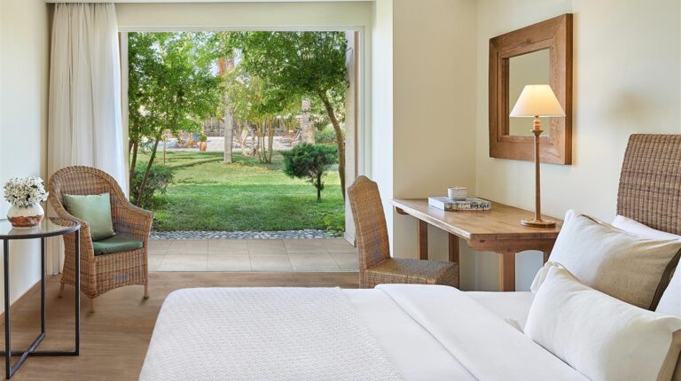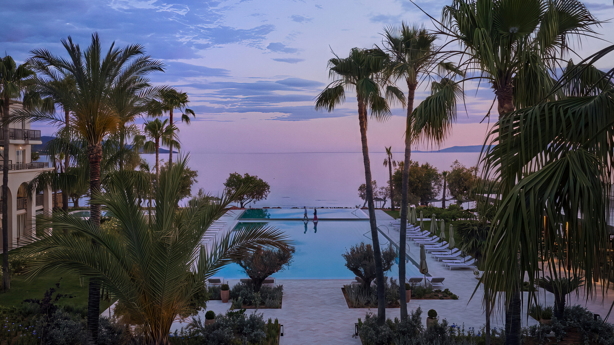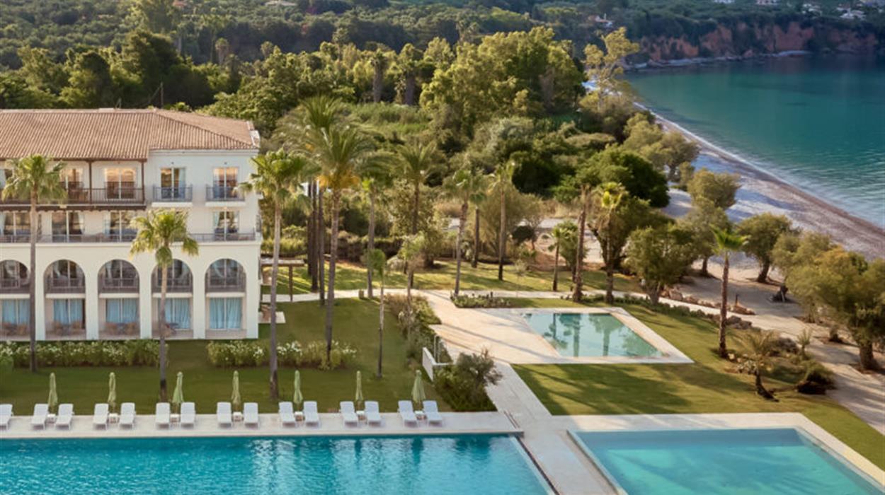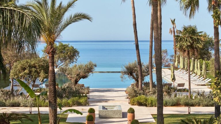 The opulent Grecotel Filoxenia is located on the outskirts of Kalamata in the Peloponnese region of Greece, at the base of the magnificent Taygetos Mountains. Exotic grounds encircle the building and border a stunning pebble beach in the Messinian Gulf. The hotel has four pools, including two outdoor poola, a kids’ pool, and an indoor pool with a hydromassage tub. It also has stunning rooms with amazing views, fine dining and gourmet cuisine. With a refreshing spa and kids’ activities for young children and teenagers on-site, the hotel makes for a perfect beach getaway for both couples and families.