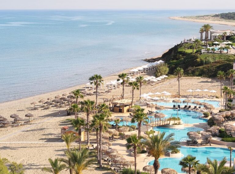Set along a 2km stretch of a pristine Blue Flag sandy beach, the Grecotel LUXME Olympia Oasis & Aqua Park is a magnificent destination for a fun-filled family holiday in Greeces Peloponnese region. The hotel forms part of the wider Grecotel Olympia Riviera resort, which boasts some truly impressive facilities including a water park, an expansive spa centre and a sports campus. Furthermore, guests will enjoy the on-site water sports and diving centre to take full advantage of the fantastic beach.