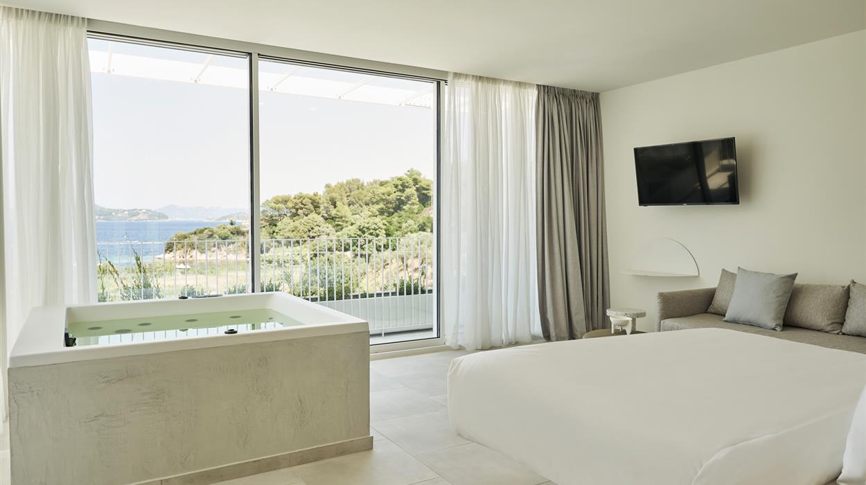 This freshly renovated 4-star hotel is located on the south coast of Skiathos in the small town of Kanapitsa and just a very short walk from the beach. This boutique style hotel, with only 84 rooms and suites, has a décor of chic, understated luxury and has created an ambiance of tranquillity with guests being able to enjoy stunning sea views and a backdrop of the surrounding lush green landscape. Skiathos is renowned for its natural scenic beauty with the island’s rolling hills covered in pine and cypress trees and boasting over 60 beaches, as well as its vibrant, cosmopolitan city. This hotel allows guests to explore Skiathos and everything it has to offer from a serene and luxurious base.