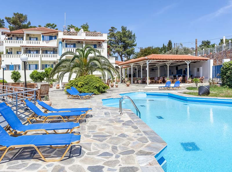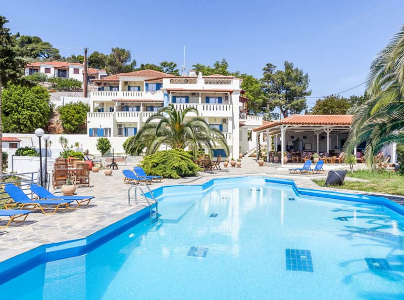 Stafylos Suites Boutique Hotel in Skopelos finds itself perched on a hill top surrounded by pine trees and looking out to the Aegean Sea. The nearest beach is 400 meters away at the bottom of the hill and a complimentary shuttle bus will take guests the short distance to and from Skopelos Town. This family run boutique hotel exudes warmth and a typical island friendliness. There is an outdoor pool and a light buffet breakfast is served daily. Light meals and refreshments can be enjoyed at the poolside café. Whilst dinner is not provided here, guests have the opportunity to explore the authentic tavernas in Skopelos Town or by the beach. The 17 suites here all feature a balcony and kitchenette and anatomic Coco-Mat mattresses are used in all rooms ensuring guests get a good nights sleep. For an authentic experience of Skopelos island, the Stafylos Suites Boutique Hotel is perfect.
