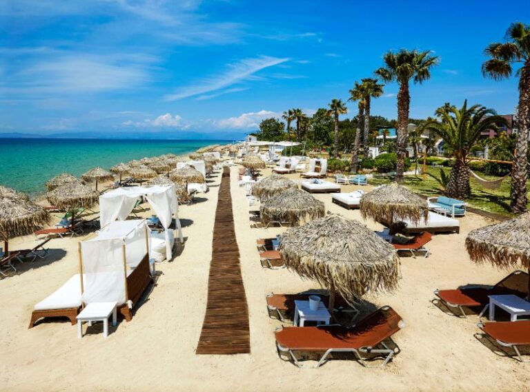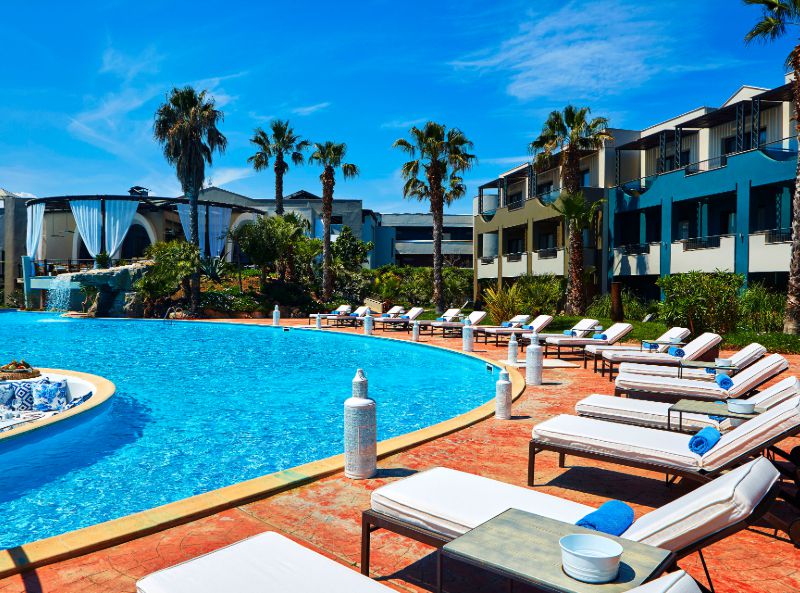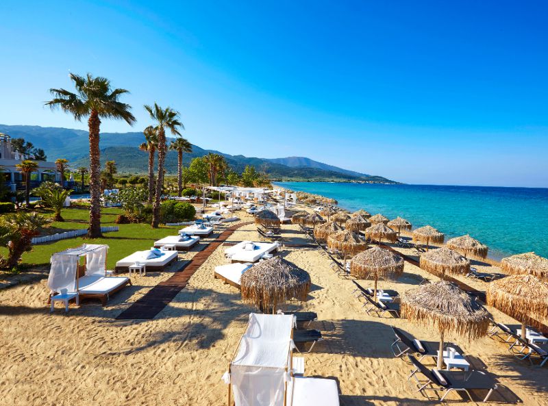 The 5* Ilio Mare Resort Hotel is a marvellous property occupying a beachfront location, with colonial architecture and exotic flair. Offering guests a luxurious stay the Ilio Mare is surrounded by stunning nature, with its palm trees and turquoise waters from its pristine coast. The hotel caters for all ages, with facilities for children and adults looking to relax and enjoy their summer holiday in Thassos. From its swimming pools, to its fitness room, playground and beach activities, the Ilio Mare will offer you a balanced family holiday of activity and relaxation.