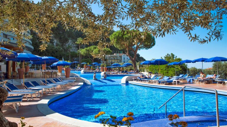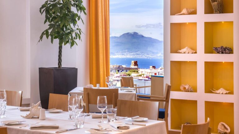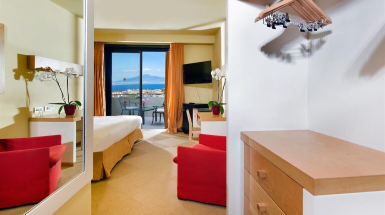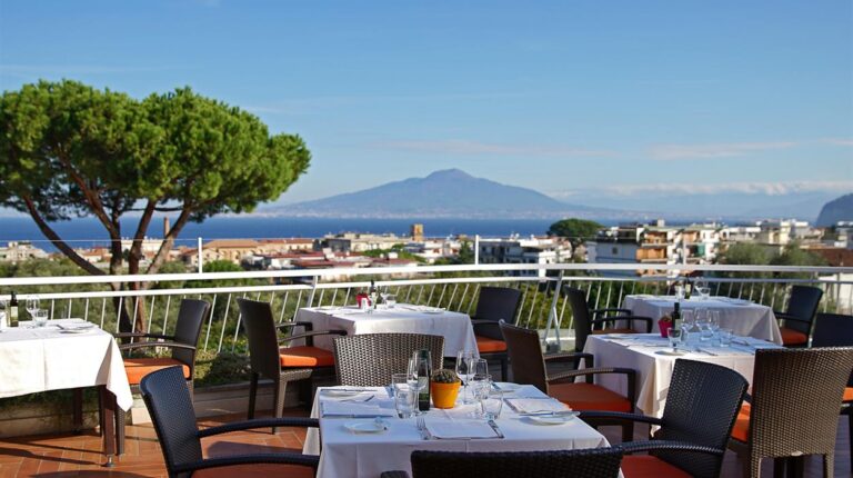 Hilton Sorrento Palace is a 5-star resort overlooking the Bay of Naples and Mount Vesuvius. Featuring 18 room and suite categories, all accommodations have a private balcony overlooking the lush mountains and citrus garden, free Wi-Fi, and tea and coffee making facilities. Ideal for business functions and private events, the hotel has dedicated spaces for meetings and events, including expansive conference spaces, catering, and banquet rooms with coastal rooms.