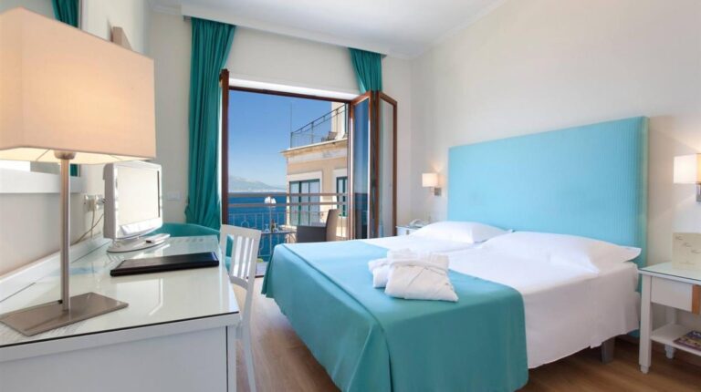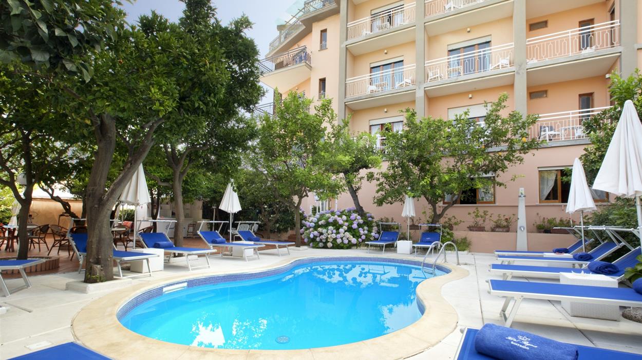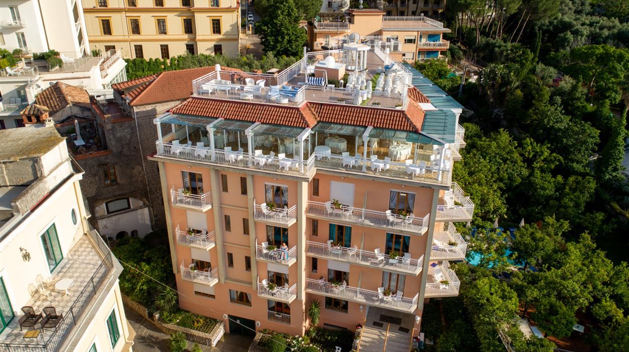 The Hotel Regina is a 4-star hotel in the historic centre of Sorrento. Thanks to the convenient location, you are within walking distance of the seaside village of Marina Grande and the beaches of San Francesco. Fully renovated in 2011, the hotel meets the highest safety and comfort standards, with brightly decorated rooms, modern amenities, and a luxurious garden. Notable onsite services include the rooftop bar, the weddings area, and the private swimming pool and solarium.