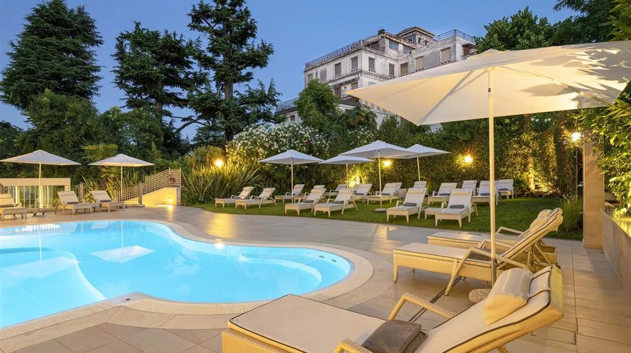 Villa Rosa is a 4-star hotel in Desenzano del Garda. Directly facing Lake Garda, you will enjoy panoramic views of the crystal-clear waters and the surrounding trees and gardens. Villa Rosa offers 4 room and suite categories. Each room can accommodate for at least 2 people and they all have at least a side balcony. Baby cots are also available by request. There are 4 onsite dining venues. Most notable is Rose & Sapori, which serves gourmet fish and meat specialties and gluten-free creations.